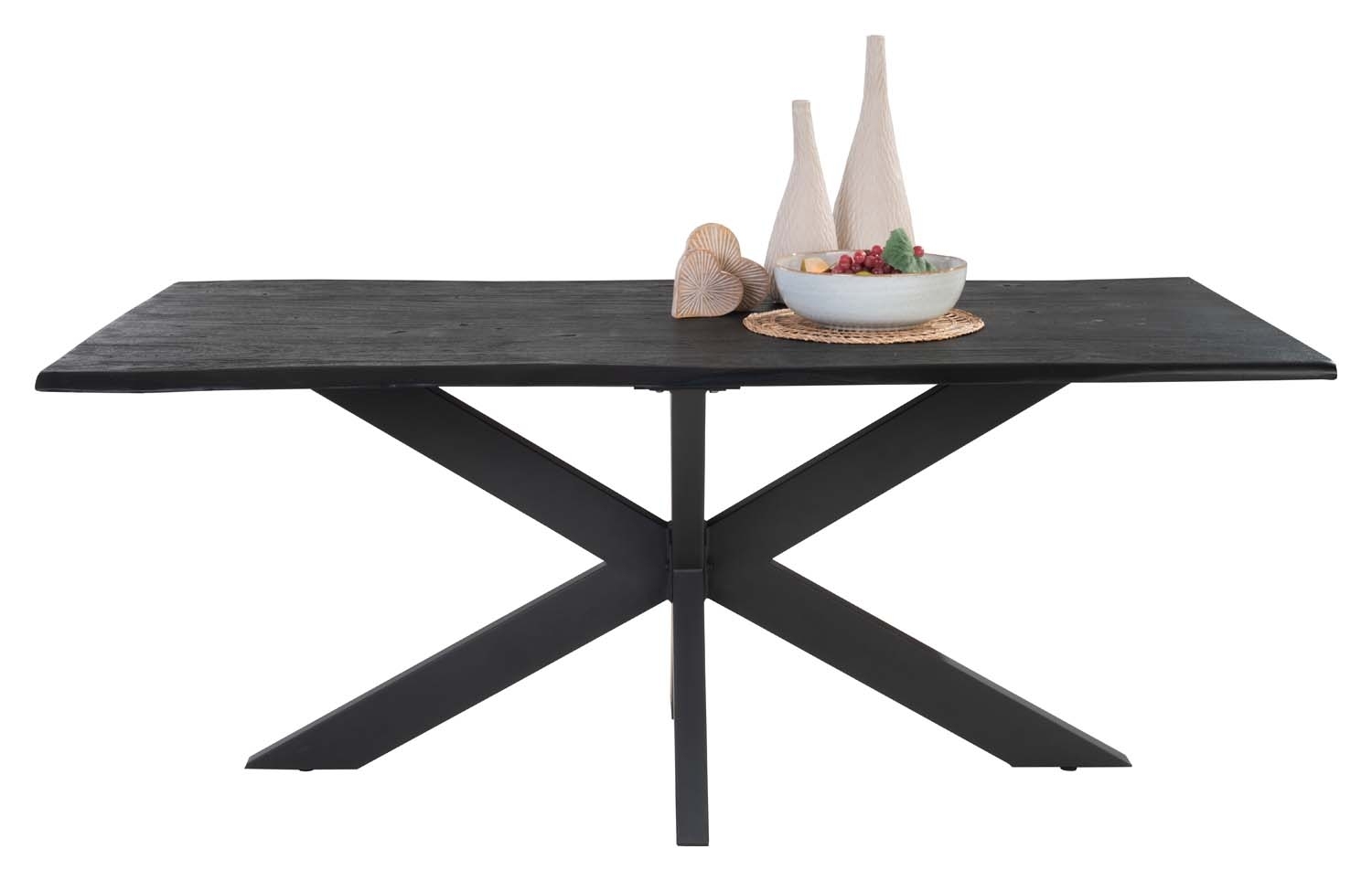 Schwarz - 180 x 90 cm - Akazie massiv - Metallgestell - mit Baumkante