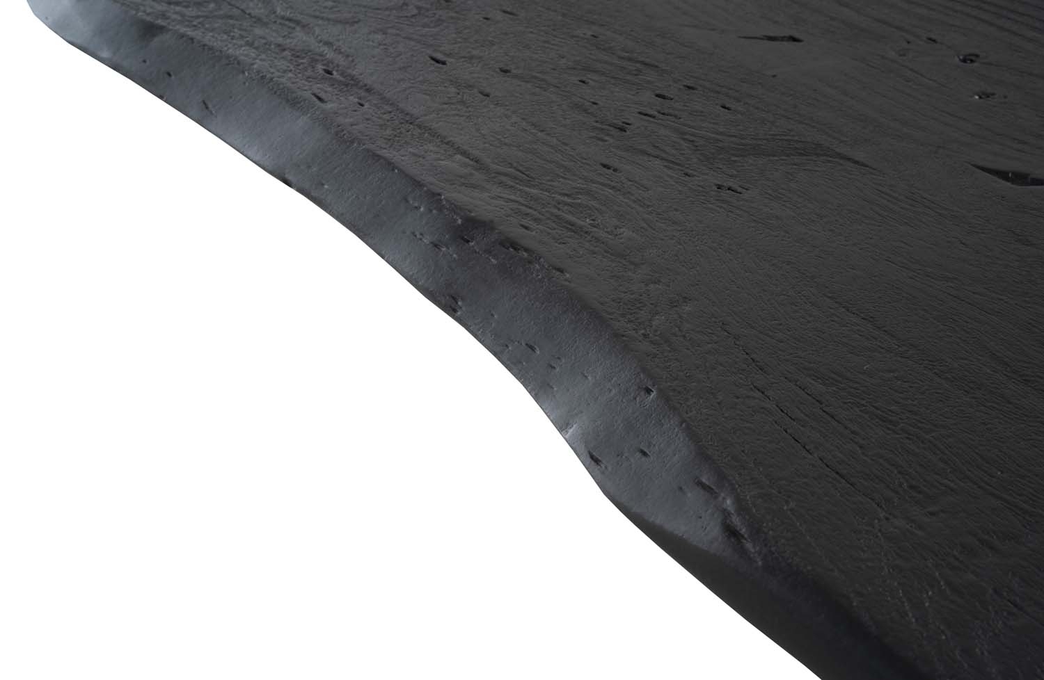 Durch die sandgestrahlte Oberflächenbehandlung bekommt die Tischplatte eine intensivere Maserung und die natürliche Struktur des Holzes wird noch mehr hervorgehoben. Dazu ist die Tischplatte beidseitig mit einer Baumkante versehen. Hier sind die Tischkanten nicht schräg oder gerade abgesägt, sondern es wurde die natürliche Form des Baumstammes beibehalten.