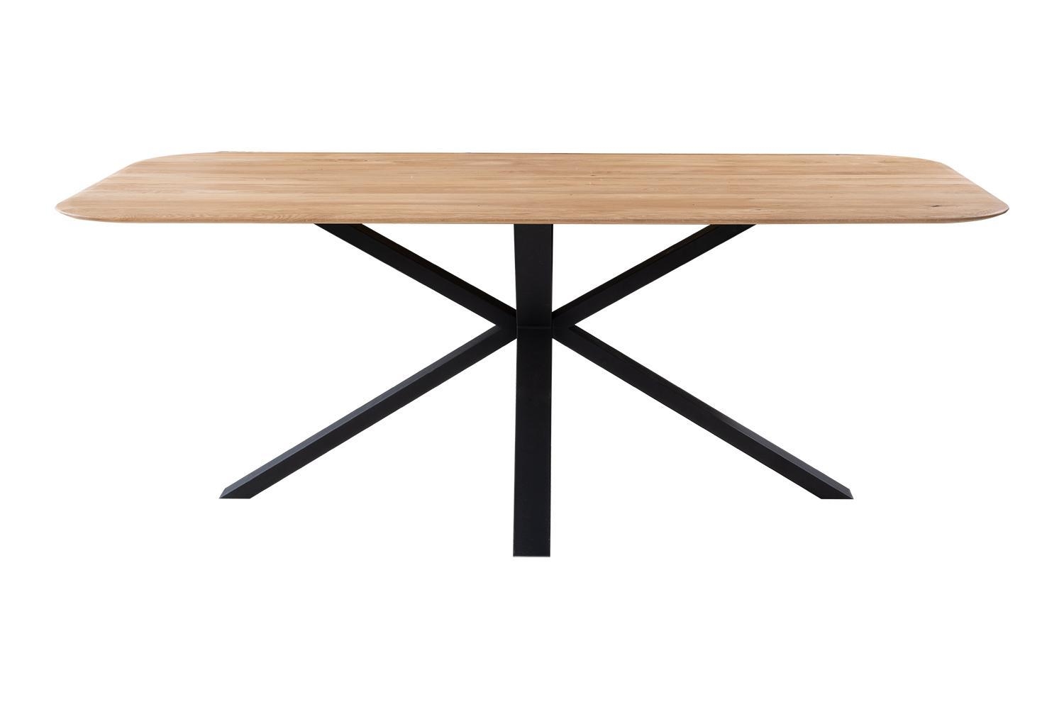 Entdecken Sie den Esstisch PHAROS. Ein elegantes Möbelstück mit einer massiven Wildeiche-Tischplatte, geölt für natürlichen Glanz. Seine großzügigen Maße von 200 x 100 cm bieten ausreichend Platz für gesellige Mahlzeiten. Das schwarze Jupiter-Gestell aus robustem Metall verleiht ihm einen modernen Touch und stabilen Halt.