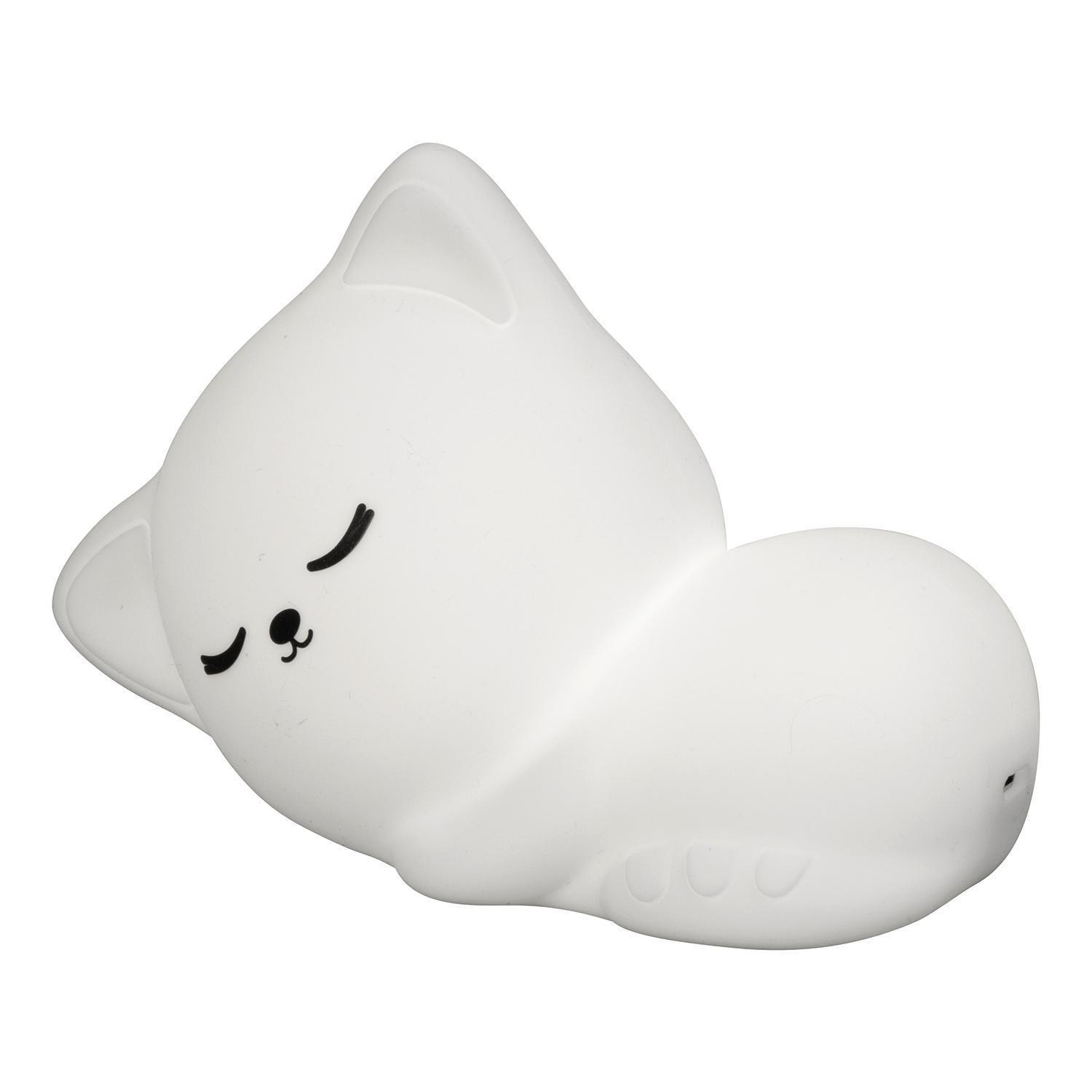 Das Akku LED-Nachtlicht MIA der Marke FH Lighting besteht aus Silikon in Weiß und ist in Katzenform gestaltet. Es verfügt über einen einstellbaren RGB-Farbwechsel sowie einen dreistufigen Touchdimmer. Das Nachtlicht wird über einen Akku mit USB-Ladekabel betrieben und ist über einen Schalter ein- und ausschaltbar. Die Maße betragen 14 cm in der Breite, 11 cm in der Höhe und 8 cm in der Tiefe. Eingesetzt ist ein LED-Leuchtmittel, das im Lieferumfang enthalten und nicht austauschbar ist. Dieses bietet eine Leistung von 0,3 Watt, eine Helligkeit von 24 Lumen sowie eine Farbtemperatur von 3000 Kelvin.
