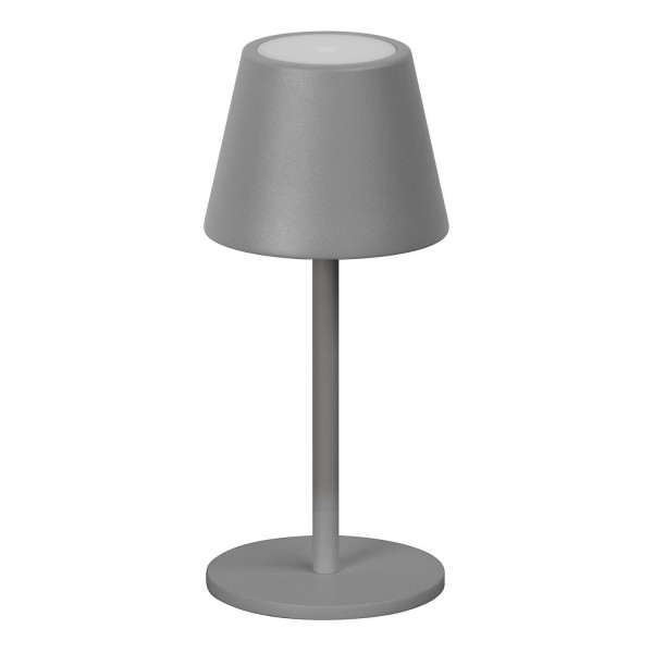 Die Akku LED-Tischlampe SALERNO der Marke FH Lighting besteht aus grauem Metall und verfügt über eine IP54-Zertifizierung, wodurch sie sowohl im Innen- als auch im Außenbereich eingesetzt werden kann. Sie besitzt einen Durchmesser von 8,5 cm und eine Höhe von 20 cm. Die Lampe ist mit einem fest verbauten LED-Leuchtmittel ausgestattet, das im Lieferumfang enthalten ist und nicht ausgetauscht werden kann. Über einen 3-stufigen Sensordimmer lassen sich Farbtemperatur und Helligkeit einstellen. Die Leistung beträgt 1,5 Watt, bei einer Farbtemperatur von 2200 bis 3500 Kelvin und einer Helligkeit von 140 Lumen. Ein USB-Ladekabel ist im Lieferumfang enthalten.
