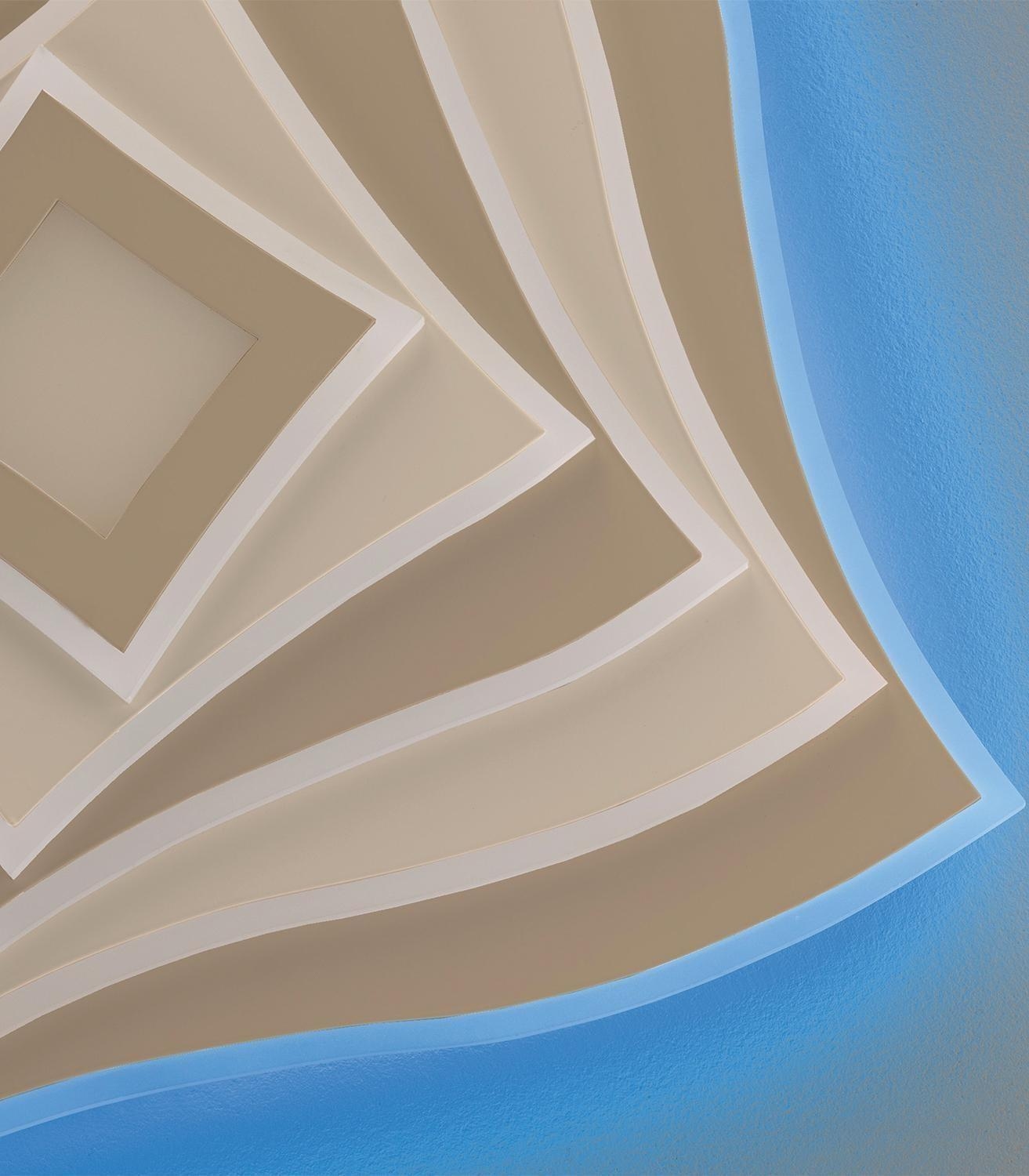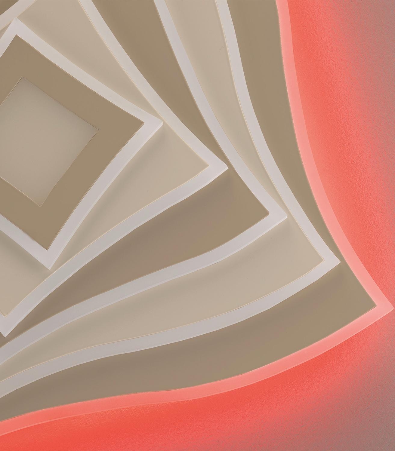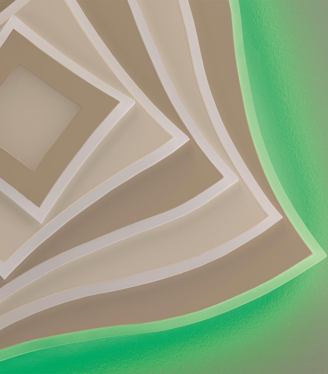 Die LED-Deckenleuchte HERO der Marke Fischer & Honsel besteht aus Metall und ist mit einem Lampenschirm aus Acryl in Greige und Sandbraun ausgestattet. Das Hauptlicht bietet eine Anpassung der Farbtemperatur, ist dimmbar und wird durch ein RGB-Backlight mit separater Steuerung ergänzt. Haupt- und Hintergrundbeleuchtung lassen sich unabhängig voneinander bedienen und sind über eine Fernbedienung einstell- und steuerbar. Die Leuchte misst 50 cm in Breite und Tiefe bei einer Höhe von 7,6 cm. Sie verfügt über zwei LED-Leuchtmittel, die im Lieferumfang enthalten und nicht austauschbar sind. Mit einer Leistung von 50 Watt erreicht die Leuchte eine Helligkeit von 4400 Lumen und deckt einen Bereich von 2700 bis 6500 Kelvin ab.