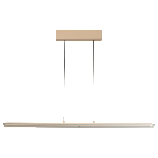 Die LED-Pendelleuchte TORVI der Marke Fischer & Honsel ist aus Metall in Sandbraun gefertigt und besitzt einen Lampenschirm aus transparentem Glas. Der Schirm ist über einen im Deckenbaldachin eingebauten Kabellift höhenverstellbar und lässt sich von 50 bis 180 cm anpassen. Die Leuchte ermöglicht die Anpassung der Farbtemperatur sowie eine 3-stufige Dimmung, die über einen Touchsensor gesteuert wird. Mit einer Breite von 115 cm, einer Höhe von 180 cm und einer Tiefe von 9 cm ist sie kompakt ausgeführt. Das fest verbaute LED-Leuchtmittel ist im Lieferumfang enthalten, jedoch nicht austauschbar. Es verfügt über eine Leistung von 22 Watt, erzeugt 2800 Lumen und bietet einen Temperaturbereich von 2700 bis 4000 Kelvin.