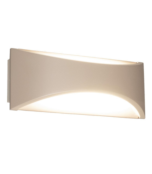 Die LED-Wandleuchte RIO der Marke Fischer & Honsel ist aus Metall in den Farben Greige und Sandfarben gefertigt und mit einem Lampenschirm aus weißem Acryl versehen. Diese Wandlampe weist eine Breite von 22,5 cm, eine Höhe von 9 cm sowie eine Tiefe von 7,7 cm auf. Die Lichtabgabe erfolgt über eine integrierte Up-Down-Beleuchtung, die den Bereich oberhalb und unterhalb der Leuchte erhellt. Das fest verbaute LED-Leuchtmittel erbringt eine Leistung von 5,5 Watt und liefert einen Lichtstrom von 540 Lumen bei einer Farbtemperatur von 2700 Kelvin.