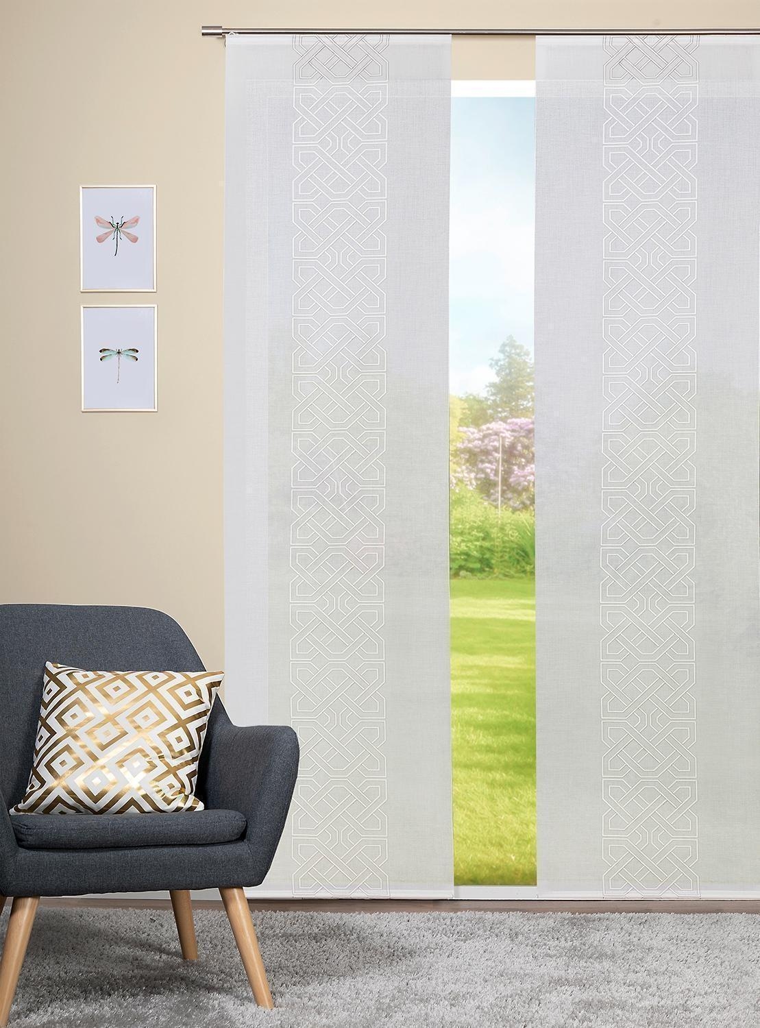 Der Flächenvorhang ZELIUS in elegantem Beige ist aus Polyester gefertigt und zeichnet sich durch ein modernes grafisches Muster aus. Die Vorhangbreite beträgt 60 cm und die Länge 245 cm. Inklusive Technik bietet dieser Flächenvorhang eine stilvolle und funktionale Fensterdekoration, die sich ideal für verschiedene Wohnbereiche eignet.