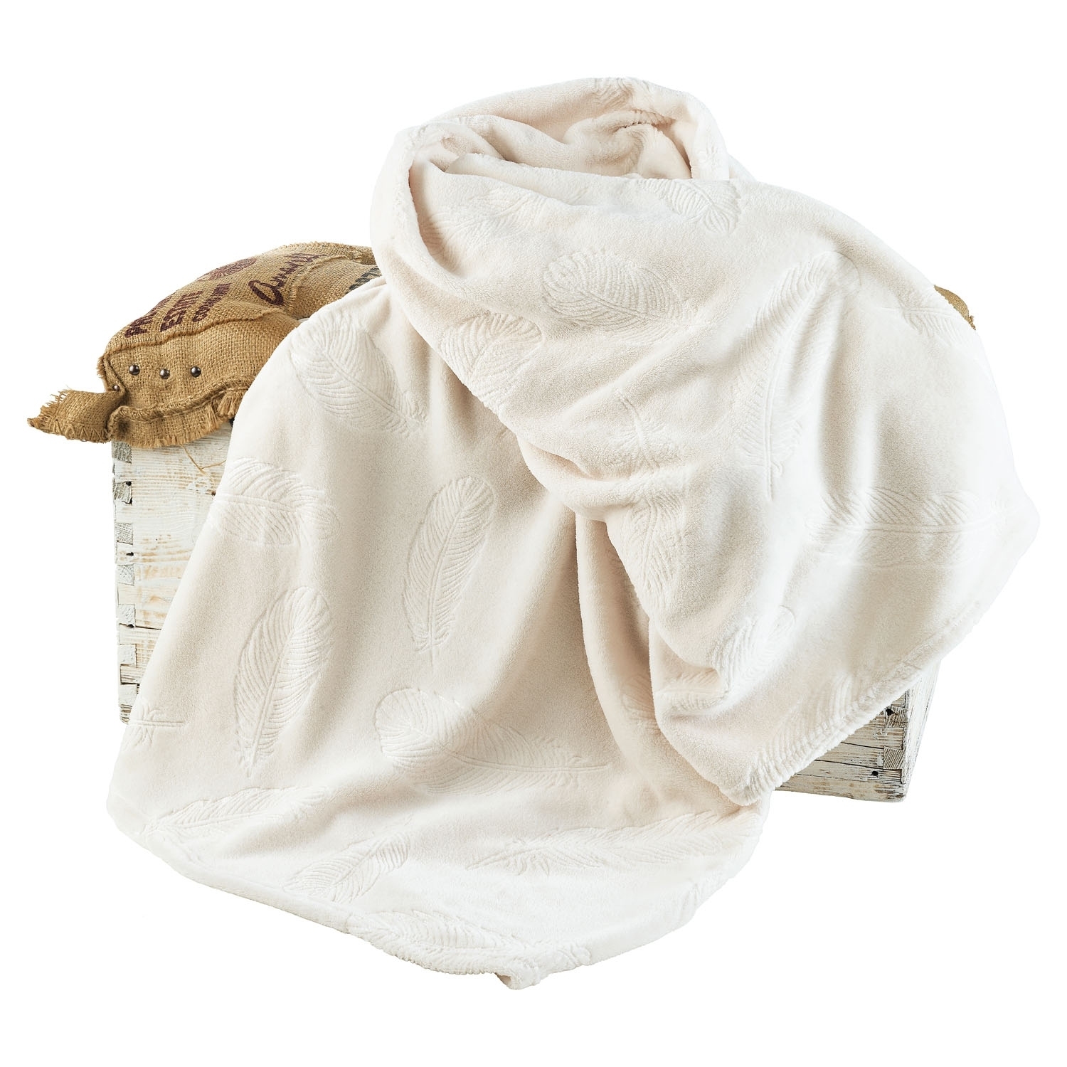 150 x 200 cm - Creme - Polyester - mit Feder-Prägedruck