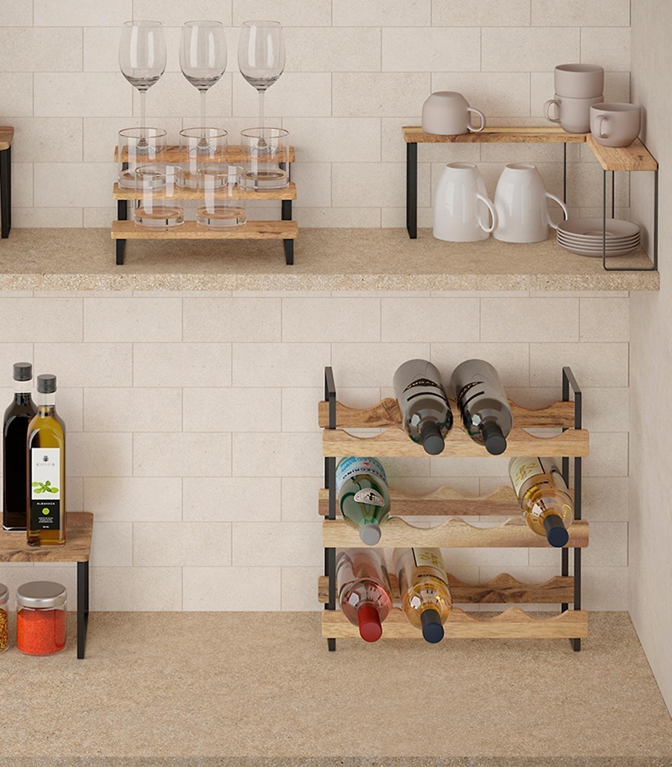 Das Flaschenregal YORK LAVA überzeugt mit seinem stilvollen Design aus geöltem Akazienholz und einem stabilen Metallgestell mit Touctherm-Beschichtung. Mit einer Höhe von 36 cm bietet es auf drei Etagen ausreichend Platz für die griffbereite Aufbewahrung von Flaschen oder Gewürzgläsern. Die rutsch- und kratzfeste Konstruktion sorgt für sicheren Stand und macht das Regal zu einem funktionalen wie dekorativen Highlight in Küche oder Essbereich.