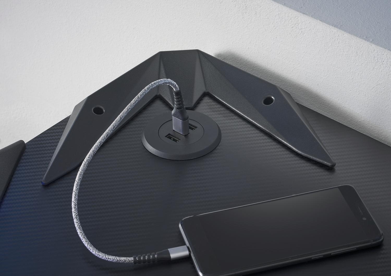 | Extras: | Integrierte Kabelführung, Mit Beleuchtung, Mit Getränkehalter, Mit USB Port |