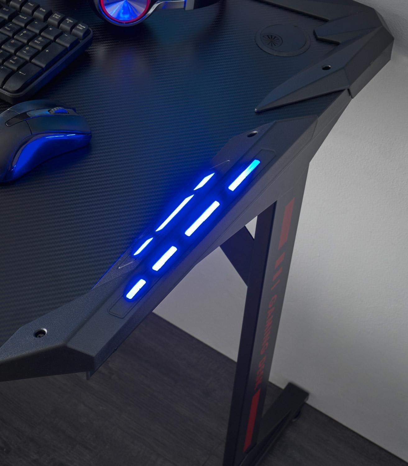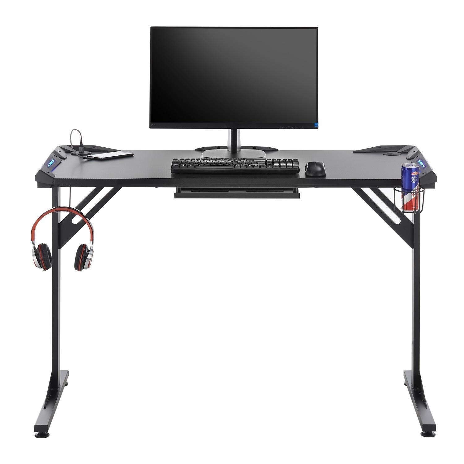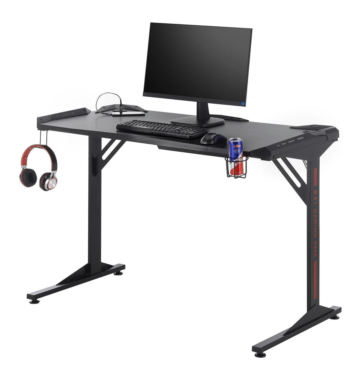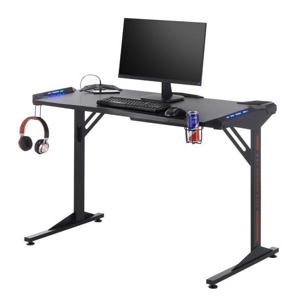 | Lieferumfang: | 1 Gaming-Schreibtisch mit LED-Beleuchtung, 3-fachem USB-Port, Kabeldurchführung, Getränkehalter und Headsethalter |