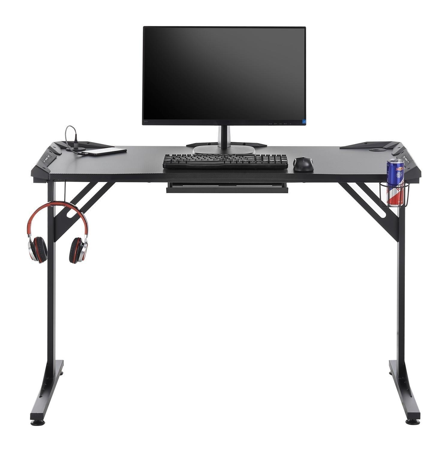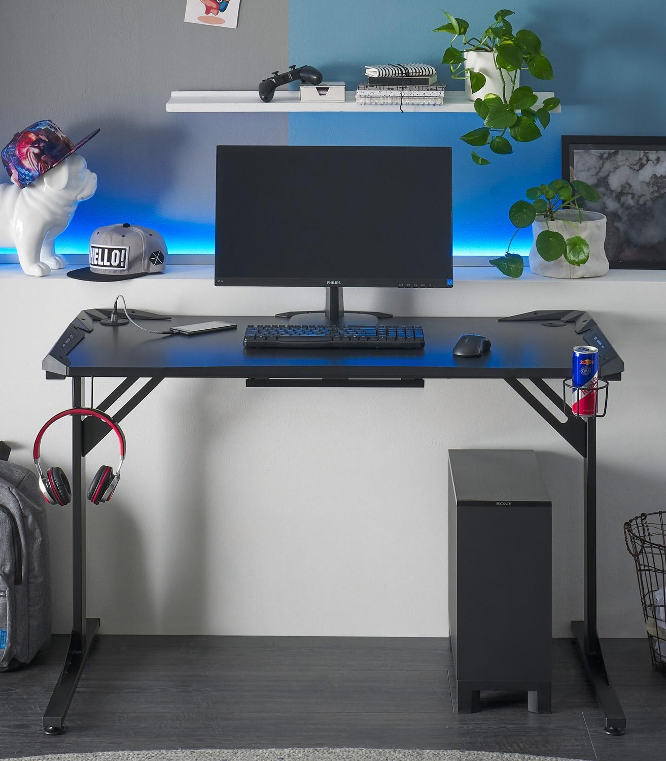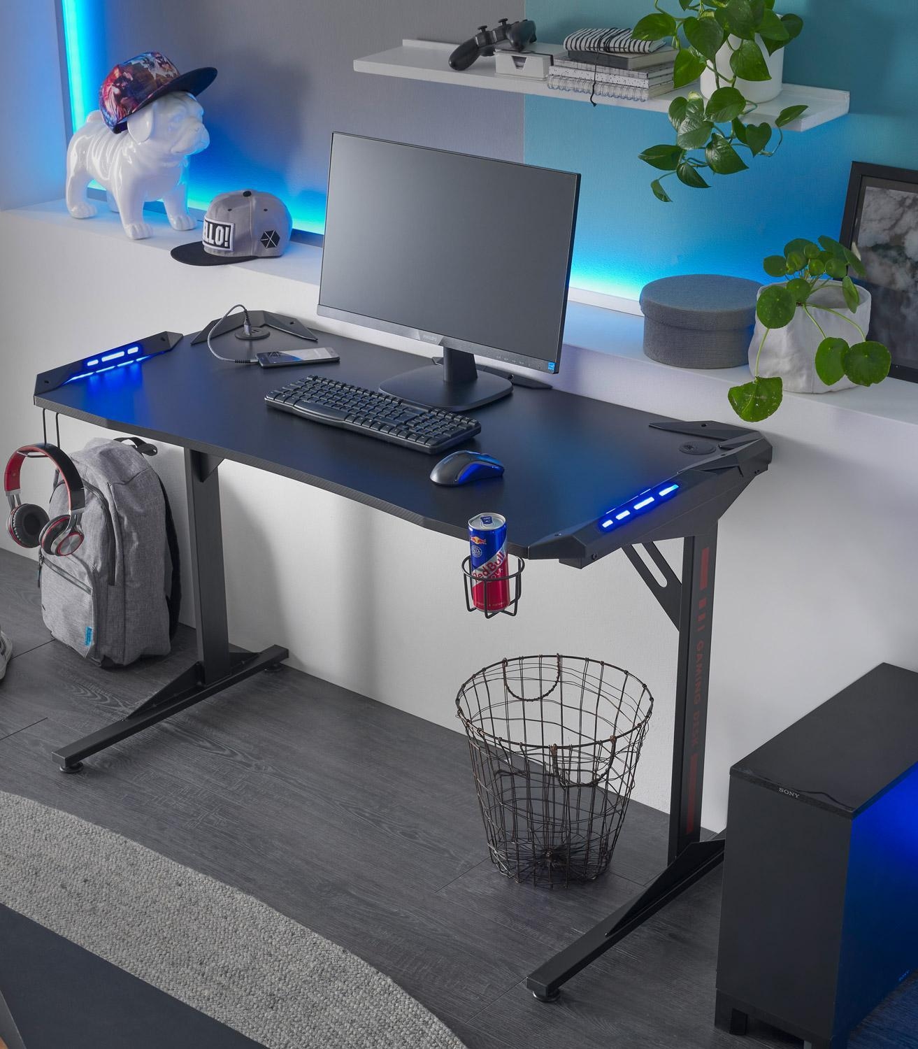 | Lieferumfang: | 1 Gaming-Schreibtisch mit LED-Beleuchtung, 3-fachem USB-Port, Kabeldurchführung, Getränkehalter und Headsethalter |