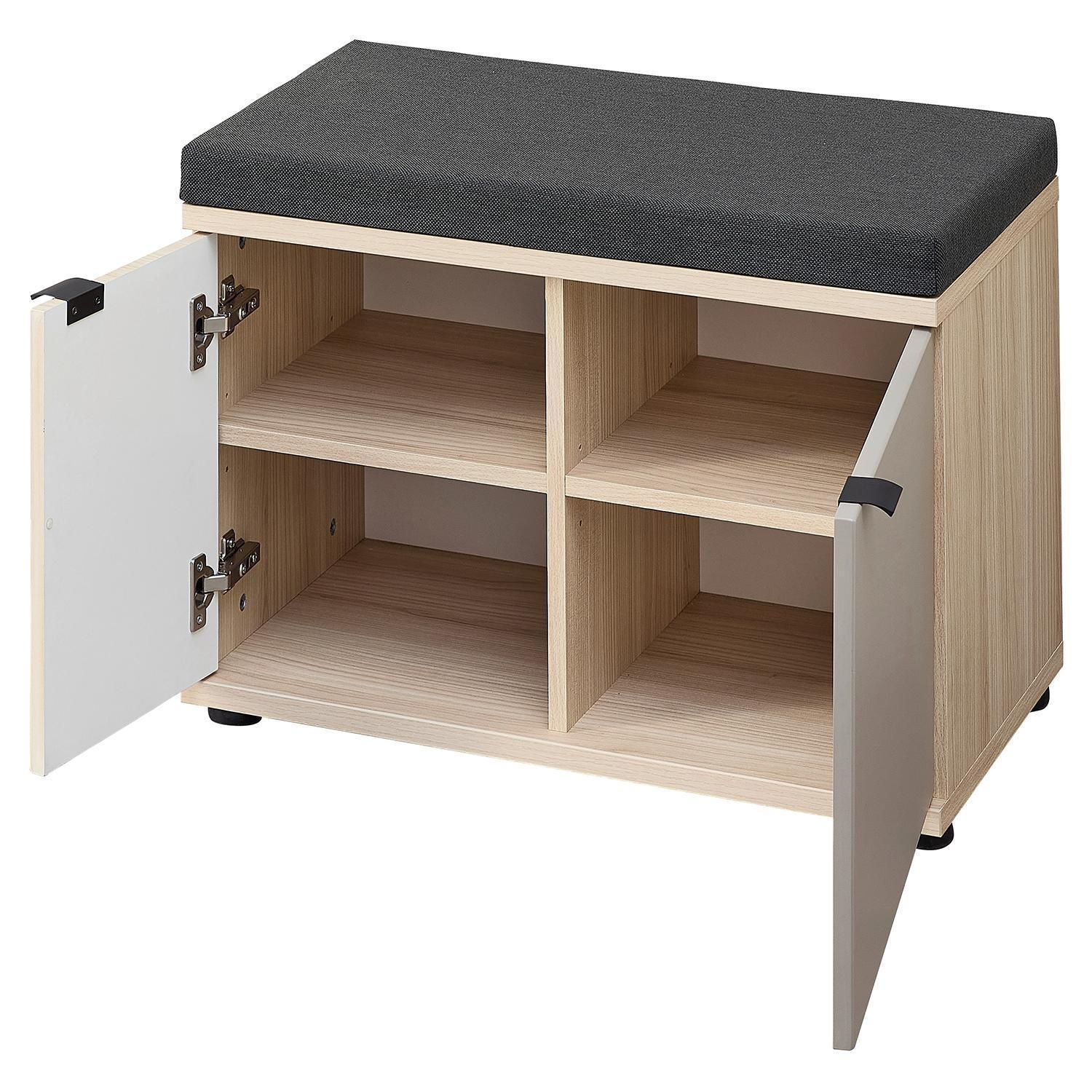 | Lieferumfang: | 1 Garderobenbank mit 2 Türen und 2 dreifach höhenverstellbare Einlegeböden. Das Sitzkissen ist mit enthalten |