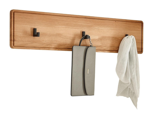 80 x 18 cm - 3 Haken - Schwarz - Metall - Wildeiche massiv geölt