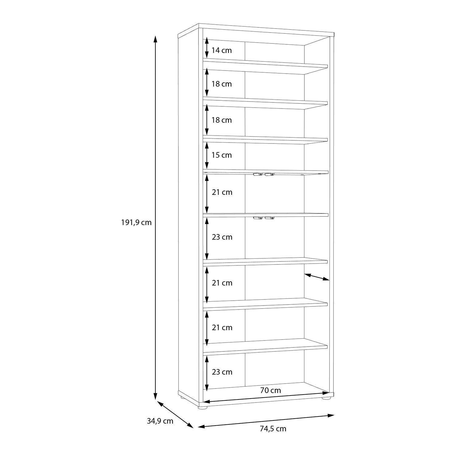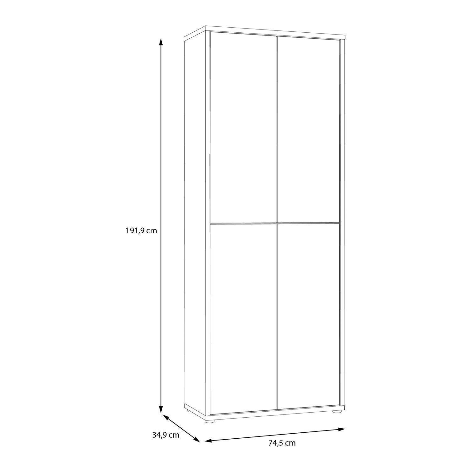| Lieferumfang: | 1 Garderobenschrank mit 4 Türen und 8 höhenverstellbaren Einlegeböden |