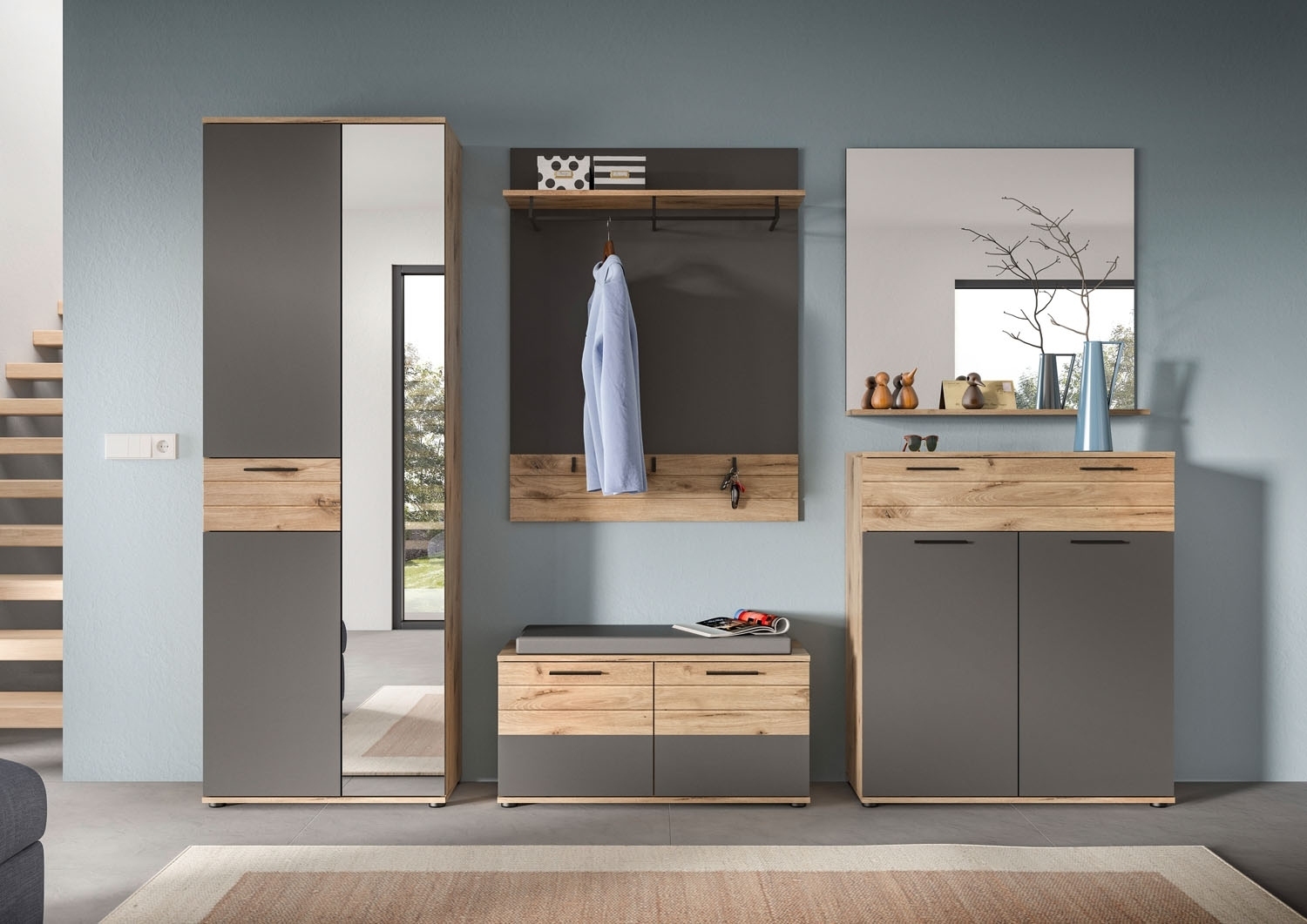 Nox Eiche Dekor - Basaltgrau - B 70 cm - 1 Tür - 1 Spiegeltür