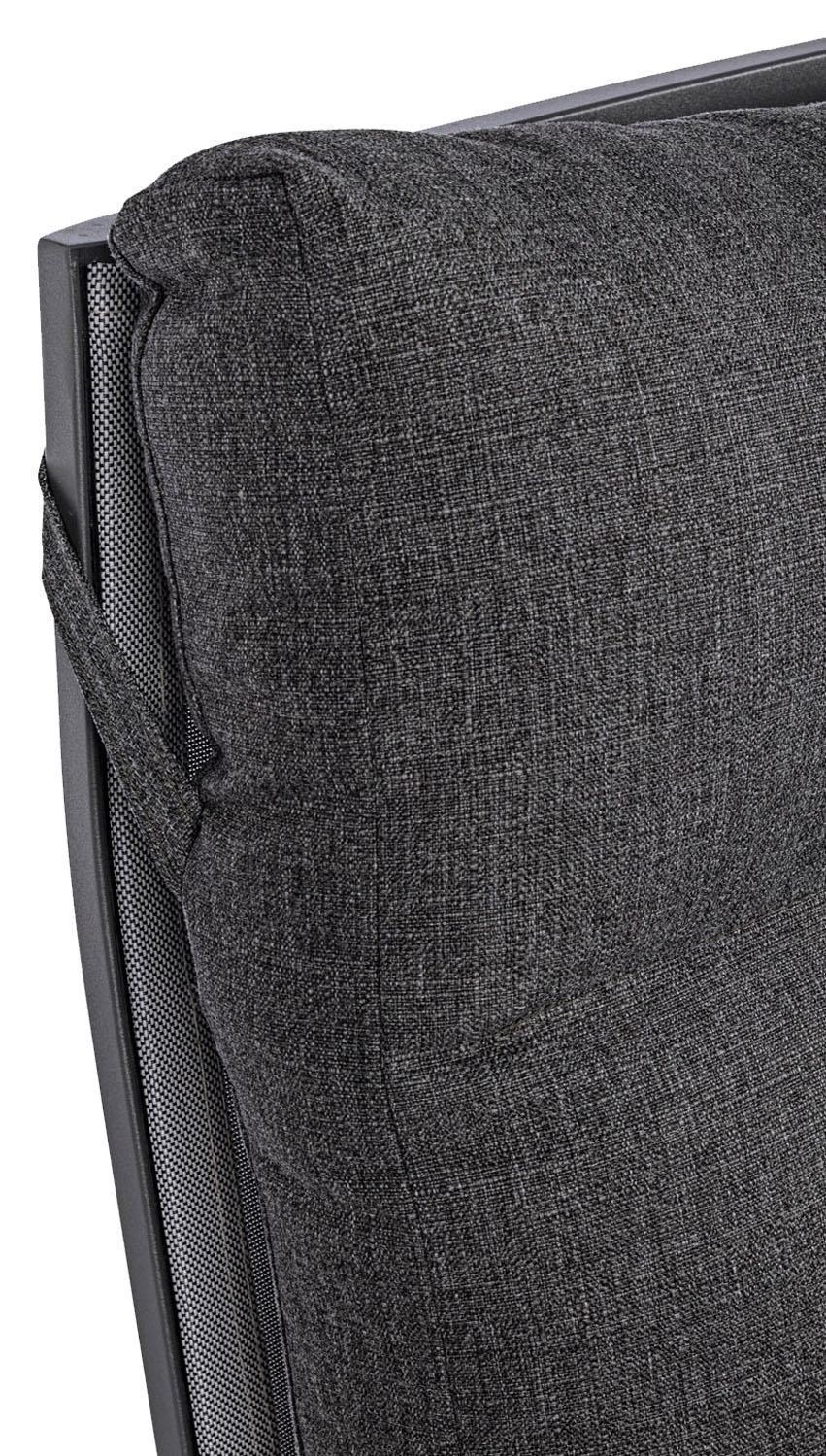 Die abnehmbaren Auflagen in anthrazit mit einem Bezug aus Polypropylen bieten hohen Sitzkomfort. Polypropylen ist besonders strapazierfähig, nimmt nahezu keine Feuchtigkeit auf, ist sehr lichtecht und kann Temperaturen bis -10 °C problemlos aushalten. Mit diesen Eigenschaften ist die Faser hervorragend für den Outdoorbereich geeignet.