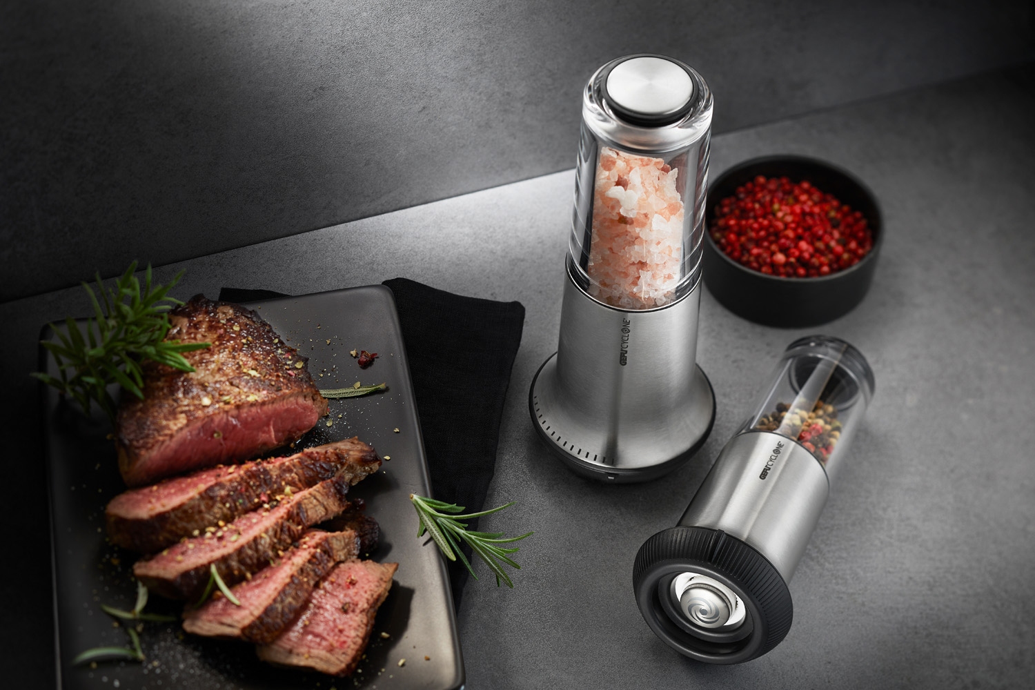 Die Salzmühle mit Keramik-Kegelmahlwerk verfügt über eine 16-stufige Mahlgradeinstellung und ist auch zum Mahlen von Pfeffer geeignet. Der luftdichte Deckel schützt die Gewürze vor Feuchtigkeit und gewährleistet so beste Ergebnisse.