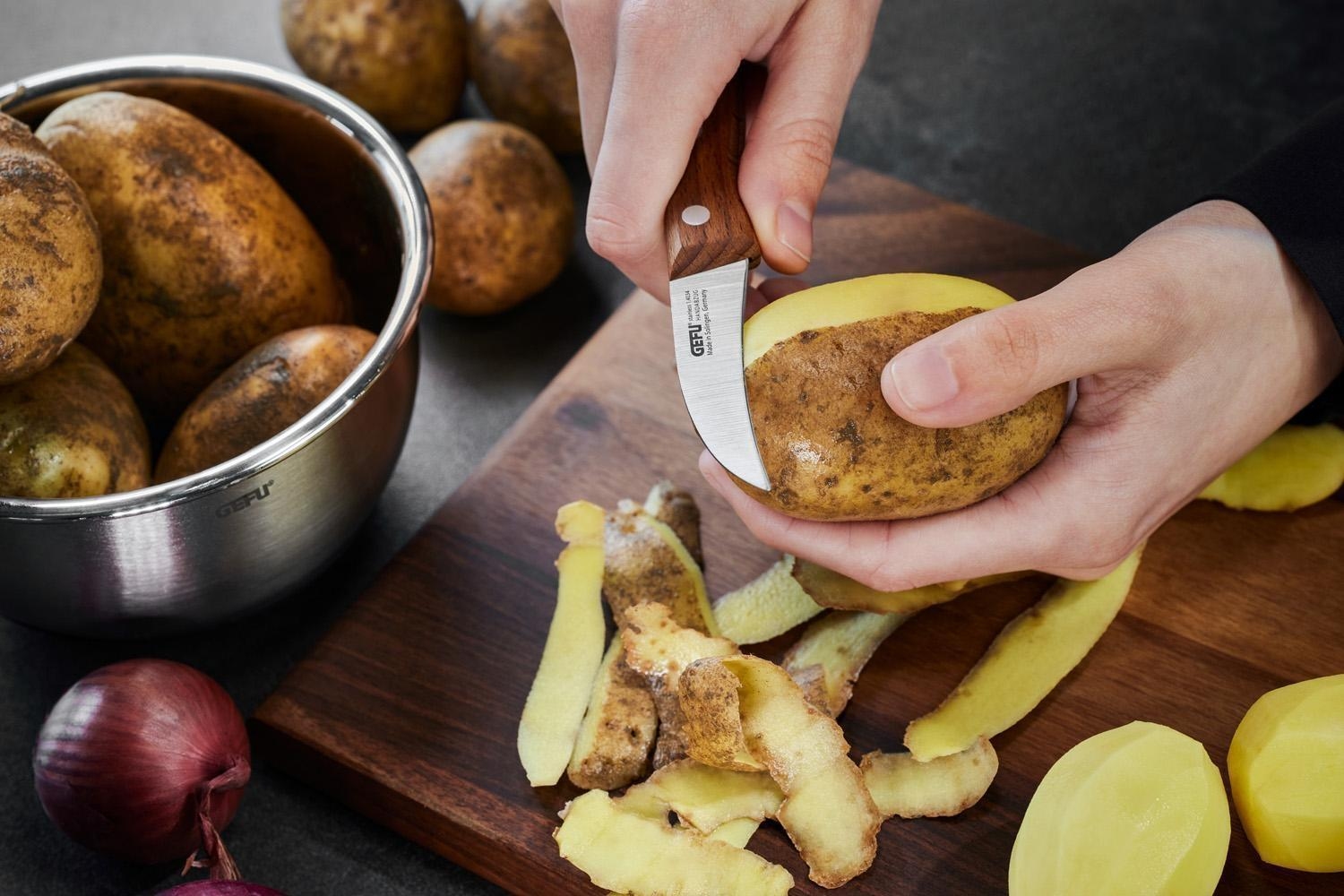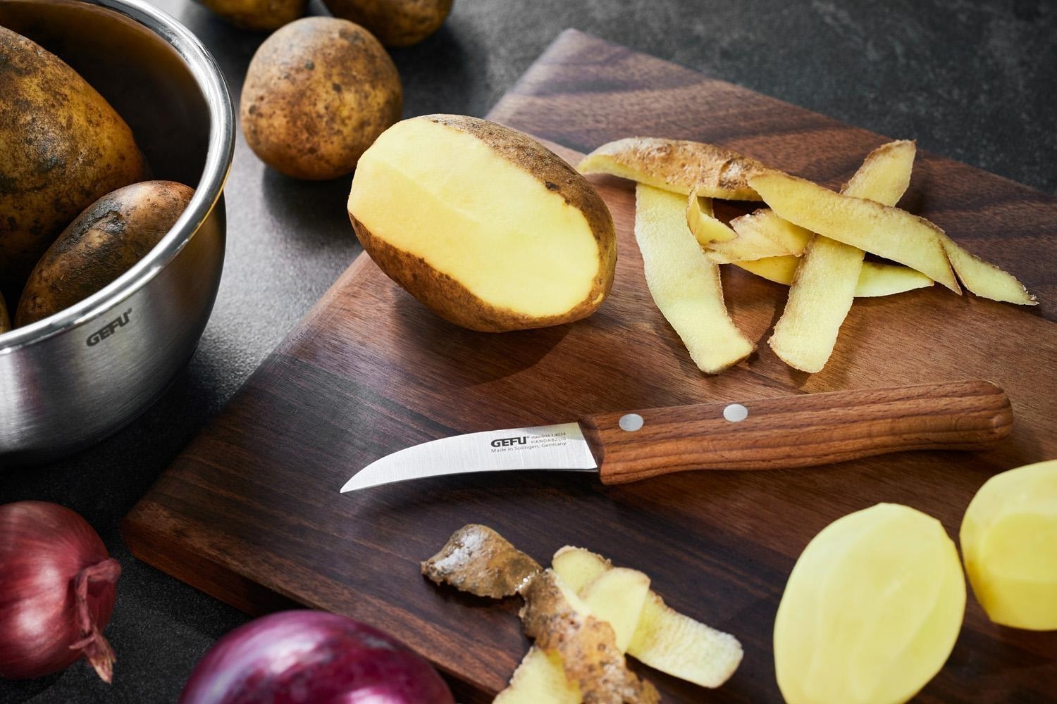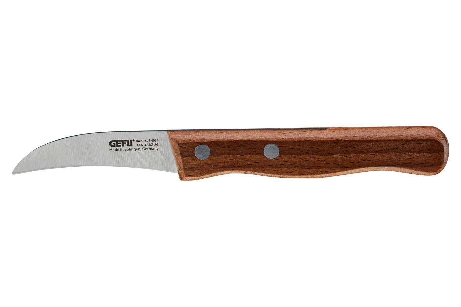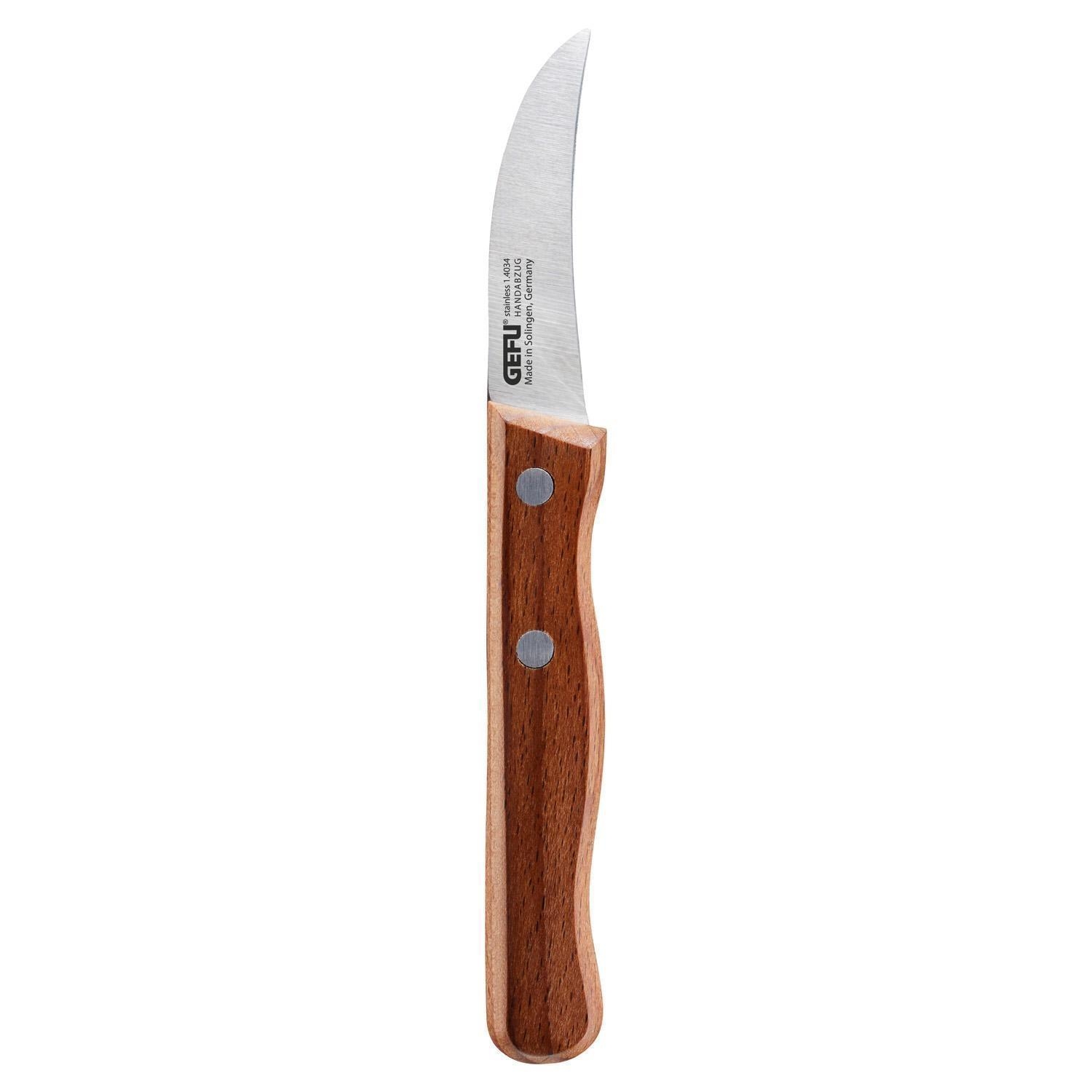 Das Schälmesser HÜMMEKEN von Gefu überzeugt durch seinen ergonomischen Griff und die scharfe Klinge aus Klingenstahl. Der Griff ist aus Walnussholz gefertigt und bietet eine angenehme Handhabung. Mit einer Gesamtlänge von 15,7 cm und einer Klingenlänge von 6 cm ist es ideal zum Schälen von Gemüse. Das Messer ist mit einer Breite von 1,1 cm und einer Höhe von 1,8 cm kompakt und handlich. Es sollte nur von Hand gewaschen werden.