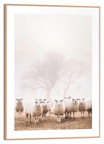 Braun - Weiß - 30 x 40 cm - Schafe im Nebel