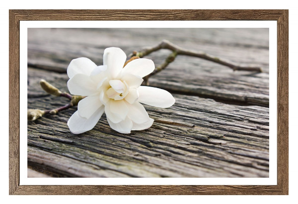- Wandbild mit Blumenmotiv in braun und weiß