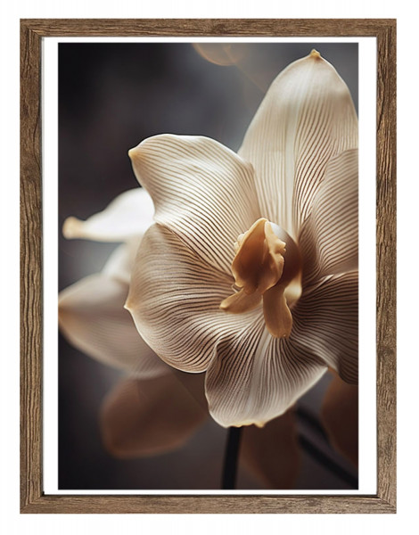 Das gerahmte Bild MALINAS ist ein ansprechendes Wandbild in Beige und Weiß mit einem eleganten Orchideen-Motiv. Mit den Maßen von 40 cm Breite und 50 cm Höhe fügt es sich harmonisch in verschiedene Wohnräume ein. Der braune MDF-Rahmen betont den hochauflösenden Kunstdruck und verleiht dem Bild eine stilvolle Note. Dieses Kunstwerk bringt eine sanfte, natürliche Schönheit in jedes Ambiente.