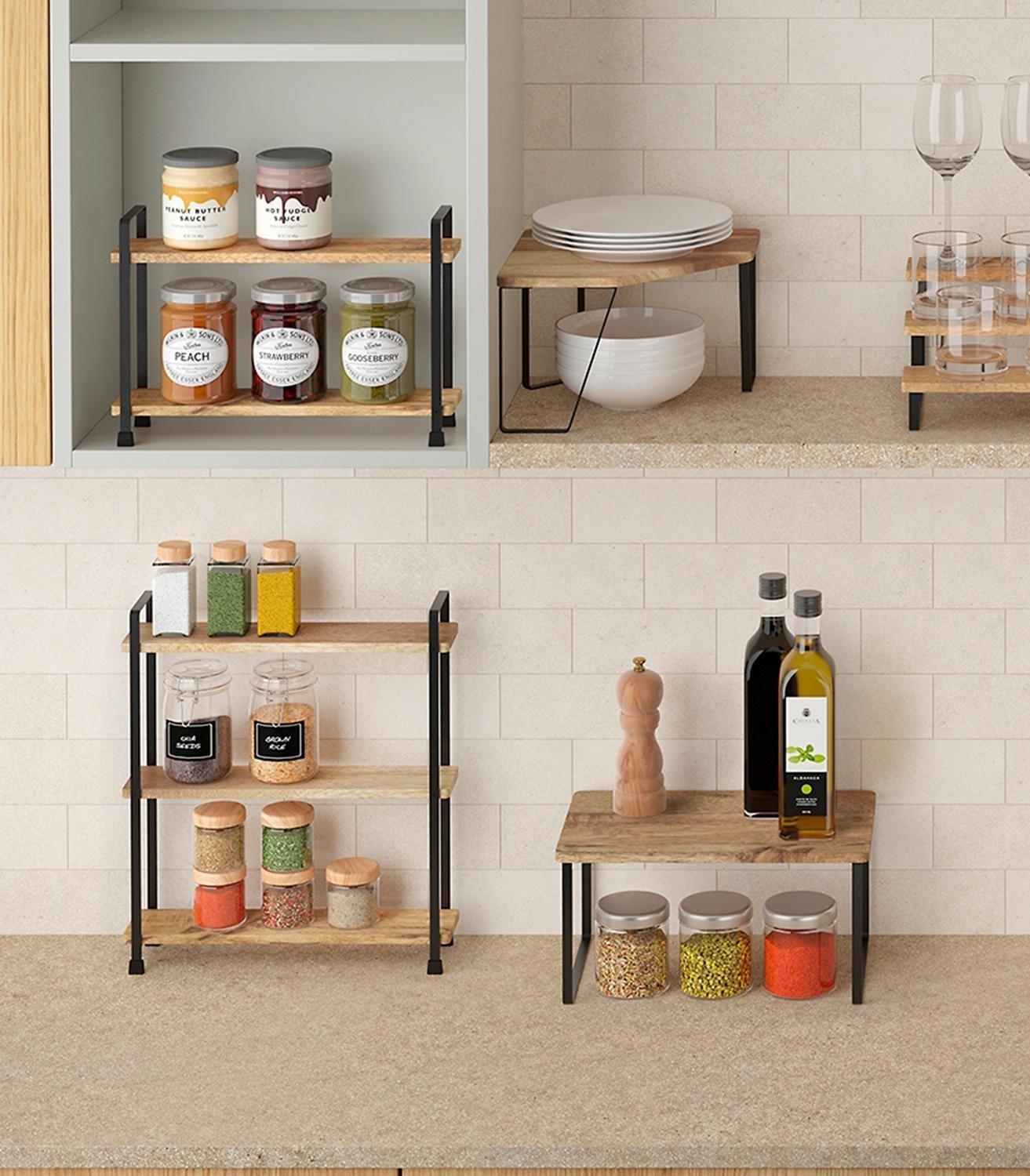 Das Gewürzregal YORK LAVA besticht durch sein elegantes Design aus geöltem Akazienholz und stabilen Metallfüßen. Mit einer Höhe von 23 cm bietet es auf zwei Etagen ausreichend Platz zur übersichtlichen Aufbewahrung von Gewürzen. Das praktische Regal verbindet natürliche Materialien mit modernem Stil und bringt Ordnung und Wärme in jede Küche.