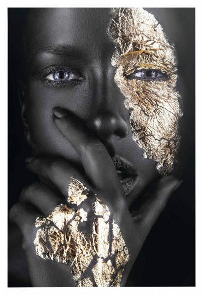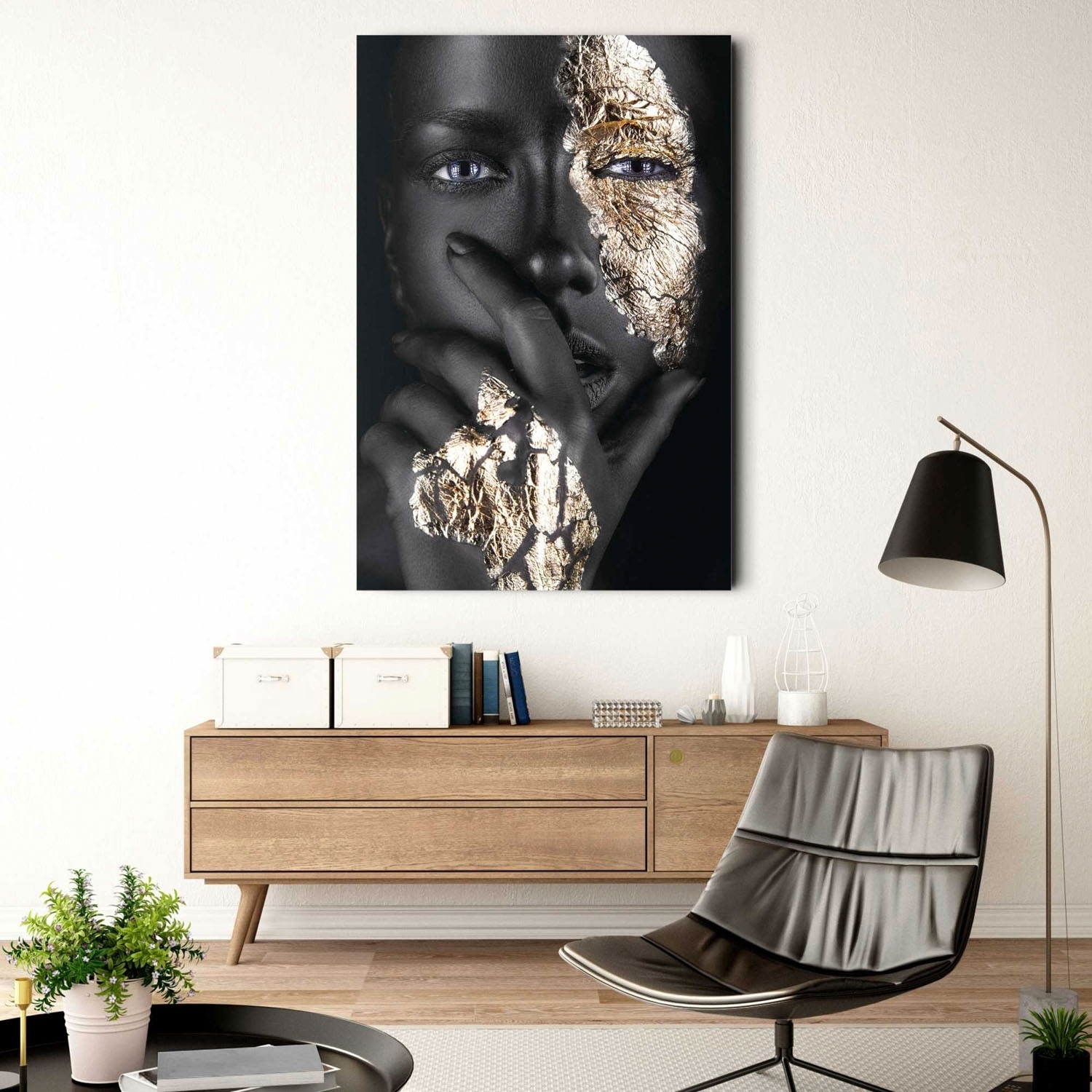 Goldgelb - Schwarz - 78 x 116 cm - Motiv mit Frauengesicht