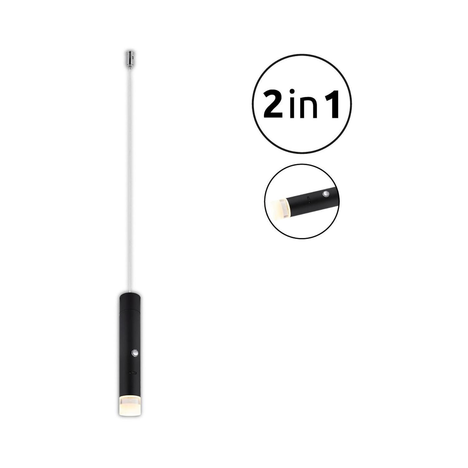 Die Akku-LED-Pendelleuchte PELO der Marke Globo Lighting besteht aus Metall in Schwarz und ist mit einem transparenten Lampenschirm aus Acryl versehen. Sie verfügt über einen wiederaufladbaren Akku, der über einen USB-C-Port samt Kabel aufgeladen werden kann. Die Helligkeit der Leuchte lässt sich stufenlos über eine integrierte Touch-Funktion regulieren. Der Lampenschirm ist abnehmbar und kann dank Magnetfunktion einfach abgenommen und als Taschenlampe verwendet werden. Die Pendelleuchte hat einen Durchmesser von 3,8 cm und eine Höhe von 120 cm. Sie ist mit einem fest verbauten LED-Leuchtmittel ausgestattet, das eine Leistung von 2 Watt, eine Lichtfarbe von 3000 Kelvin und eine Helligkeit von 200 Lumen bietet.