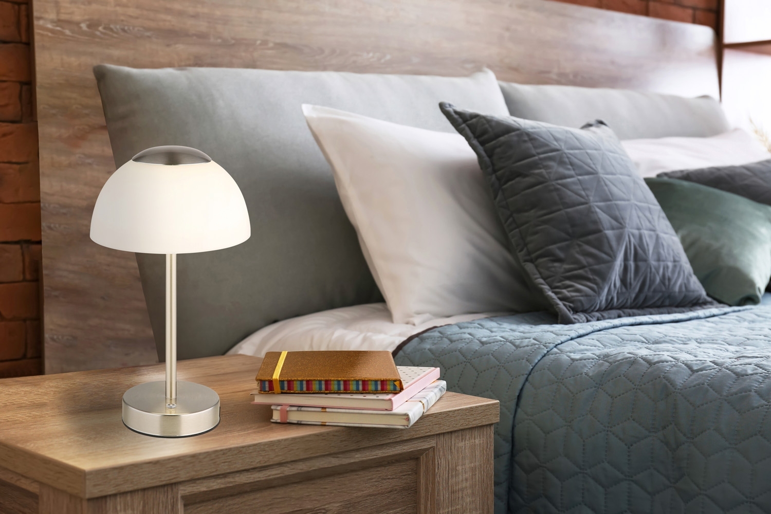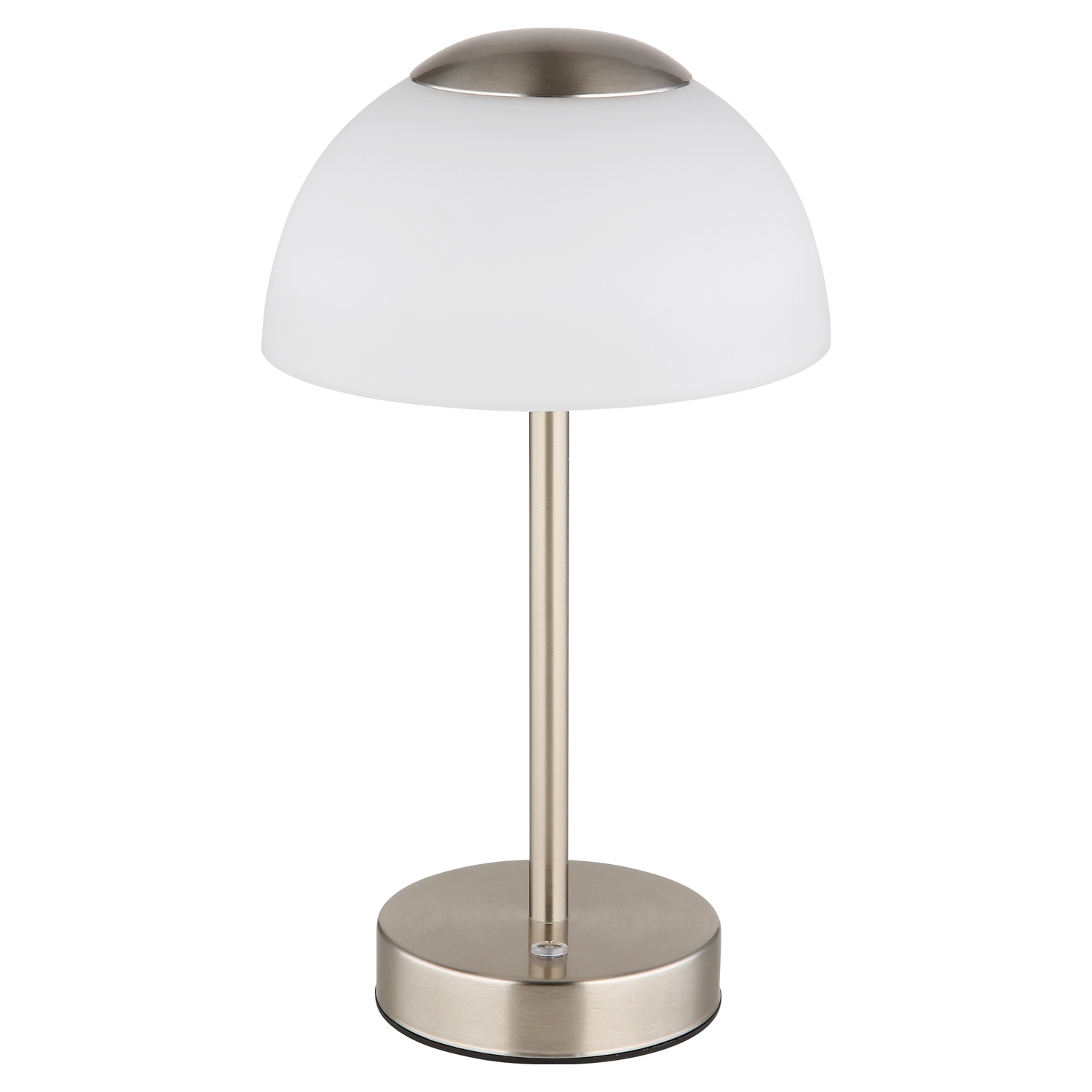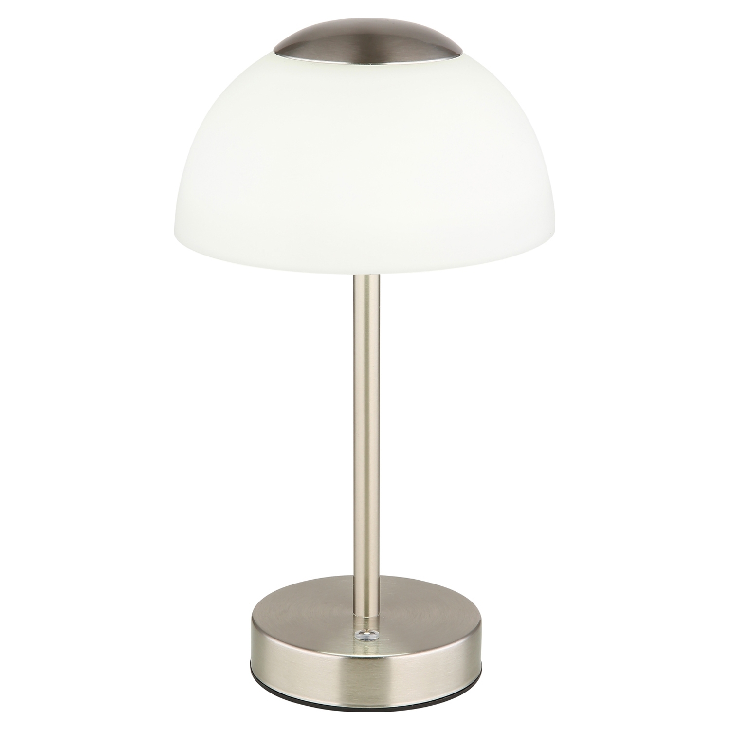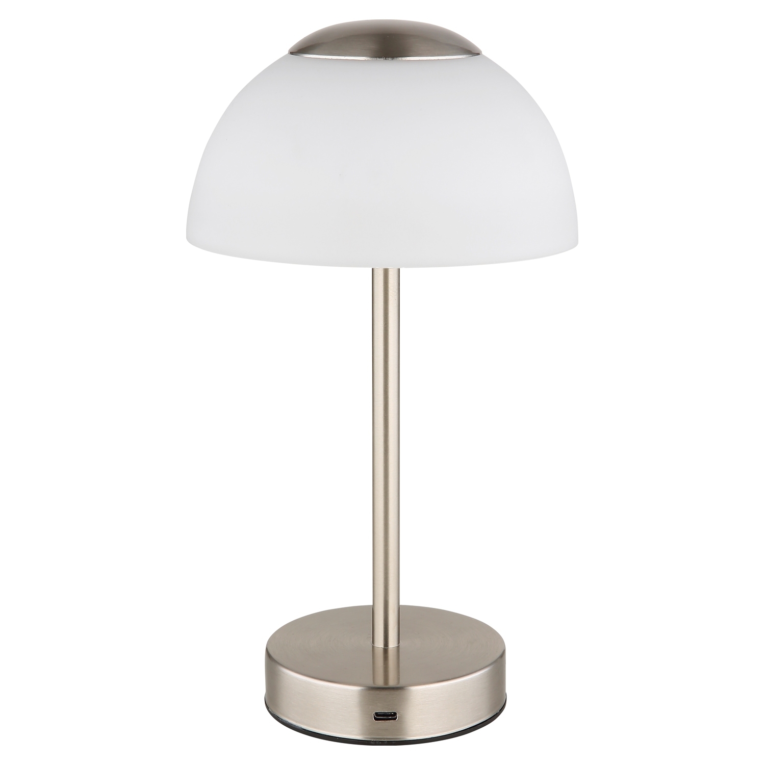 Die Akku LED-Tischlampe SARIMA von Globo Lighting kombiniert elegantes Design mit praktischer Funktionalität. Hergestellt aus Metall in nickelfarben und einem Lampenschirm aus weißem Glas strahlt sie zeitlose Eleganz aus. Der wiederaufladbare Akku mit USB-Port und mitgeliefertem Kabel ermöglicht kabellose Beleuchtung und einfaches Aufladen. Die Lampe ist stufenlos dimmbar und verfügt über einen Touchsensor für bequeme Helligkeitsanpassungen. Mit einem Durchmesser von 15 cm und einer Höhe von 31 cm passt sie perfekt auf jeden Tisch oder Nachttisch. Das enthaltene LED-Leuchtmittel bietet eine Leistung von 1,5 Watt, eine anpassbare Farbtemperatur von 2700 - 6500 Kelvin und eine Helligkeit von 243 Lumen, was für eine angenehme Beleuchtung sorgt.
