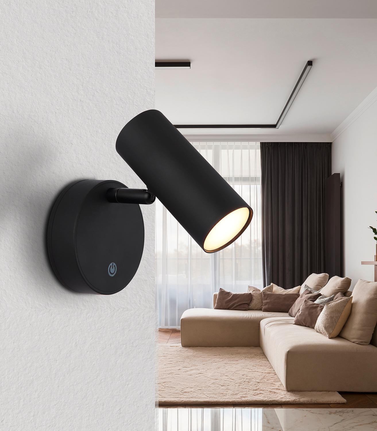 Die Akku-LED-Wandleuchte ALLVI der Marke Globo Lighting besteht aus Kunststoff in der Farbe Schwarz und hat eine Breite von 10 cm, eine Höhe von 12,5 cm sowie eine Tiefe von 15 cm. Die Montage der Wandlampe erfolgt über eine magnetische Wandhalterung. Über einen Touchsensor lässt sich das Licht steuern und stufenlos dimmen. Ein USB-C-Ladekabel für die Stromversorgung des integrierten Akkus gehört zum Lieferumfang. Die Lichtquelle umfasst ein fest verbautes LED-Leuchtmittel mit einer Leistung von 0,4 Watt, einem Lichtstrom von 29 Lumen und einer Farbtemperatur von 3000 Kelvin.