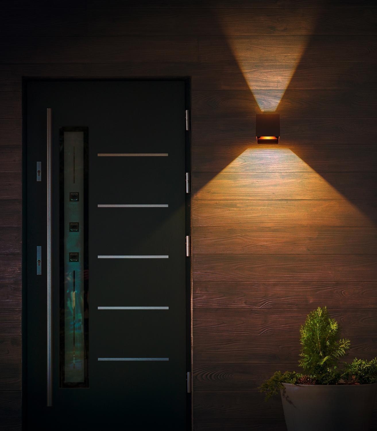 | Lieferumfang: | 1 Wandleuchte für den Außenbereich mit 2 integrierten LED-Leuchtmitteln. Ohne Netzkabel und Stecker. Für den Anschluss der Wandleuchte wird eine Unterputzverkabelung in der Wand benötigt |