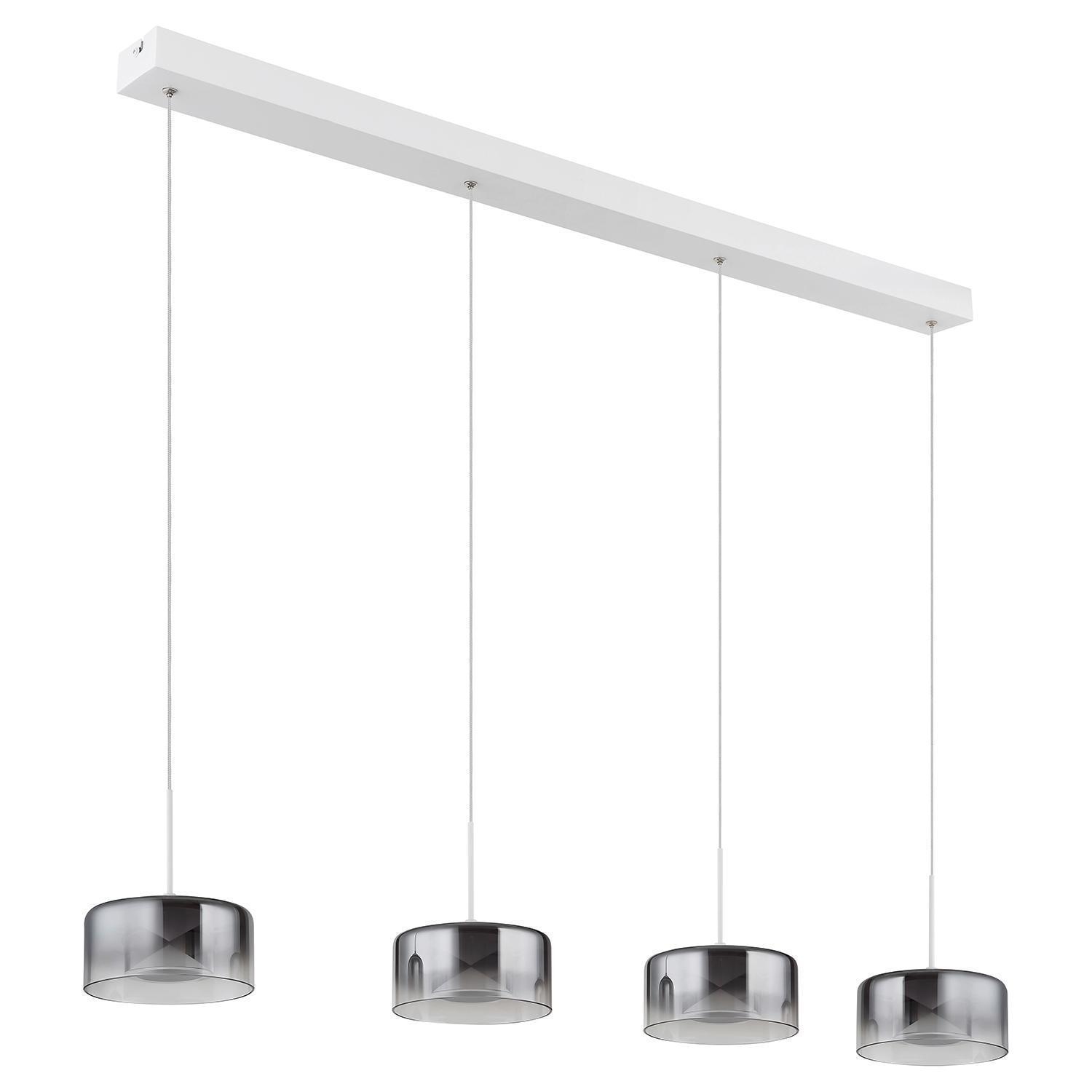 105 x 150 cm - 4-flammig - Rauchfarben - Weiß matt - Glas - Metall - höhenverstellbar