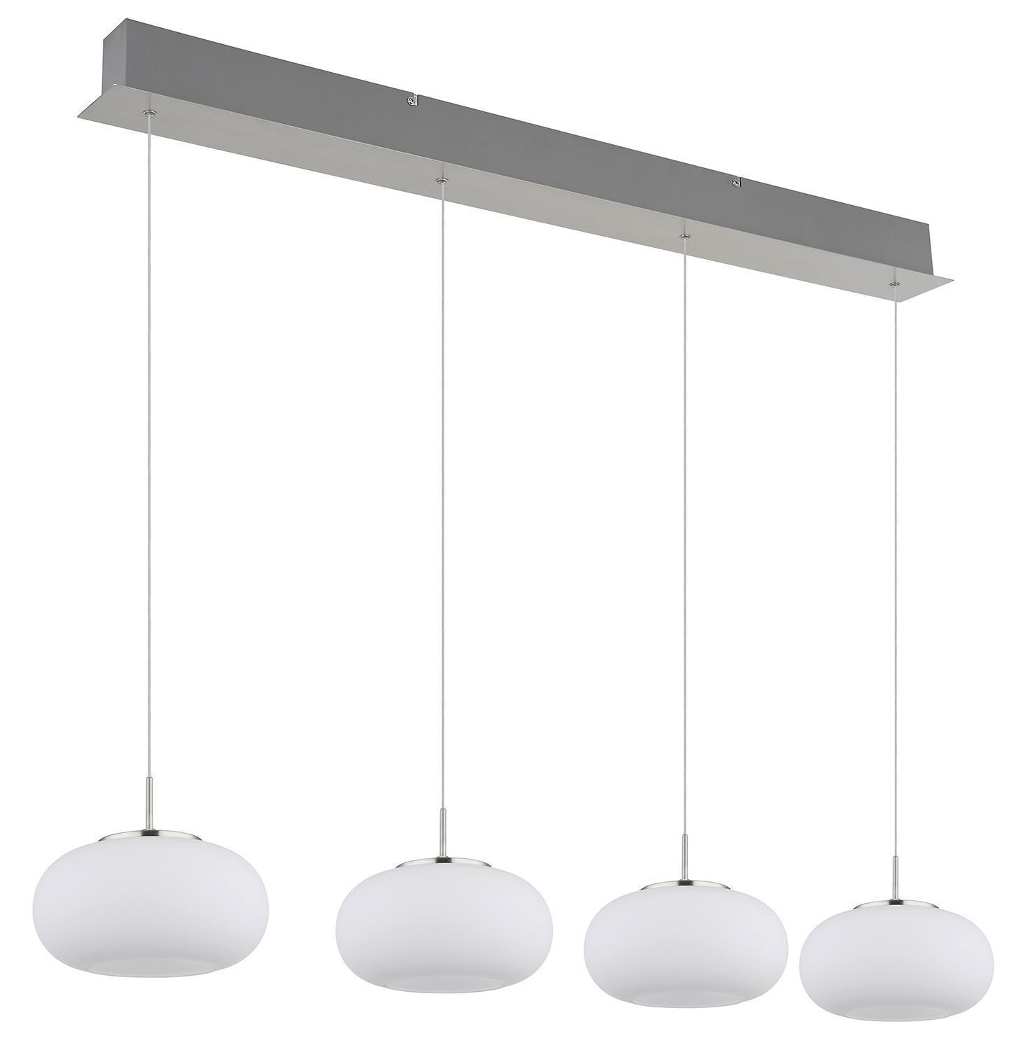 110 x 150 cm - 4-flammig - Nickelfarben - Weiß - Opalglas - Metall - höhenverstellbar