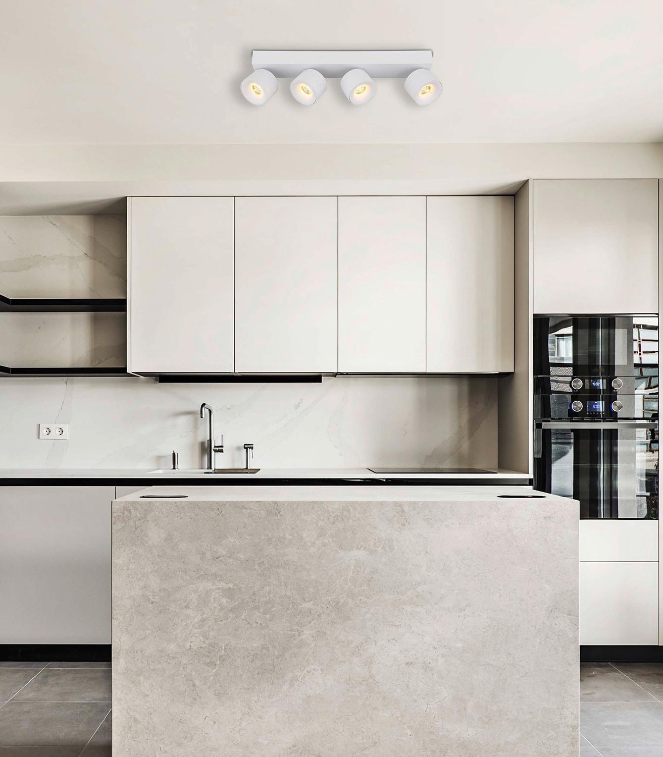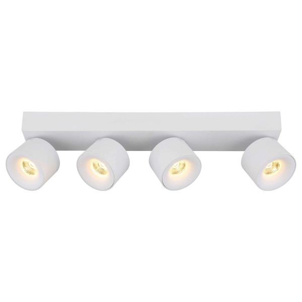 Der LED-Strahler RAE der Marke Globo Lighting besteht aus weißem Metall und ist mit Lampenschirmen aus Acryl und Aluminium ausgestattet. Die Leuchte verfügt über vier verstellbare Lampenschirme, die eine flexible Ausrichtung des Lichts ermöglichen. Mit einer Breite von 45,5 cm, einer Höhe von 12 cm und einer Tiefe von 7,2 cm bietet der Strahler kompakte Abmessungen für verschiedene Einsatzbereiche. Die integrierten LED-Leuchtmittel sind im Lieferumfang enthalten und nicht austauschbar. Bei einer Leistung von 24 Watt erzeugt der Strahler eine Helligkeit von 1920 Lumen und eine warmweiße Lichtfarbe mit 3000 Kelvin.