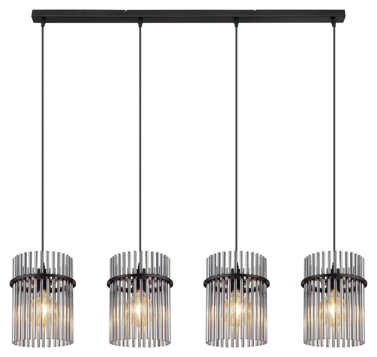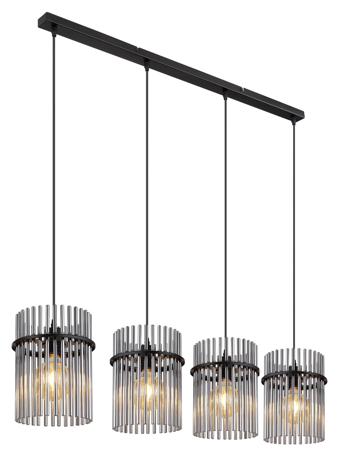 Schwarz matt - Metall - Rauchglas - 4-flammig - 110 x 140 cm