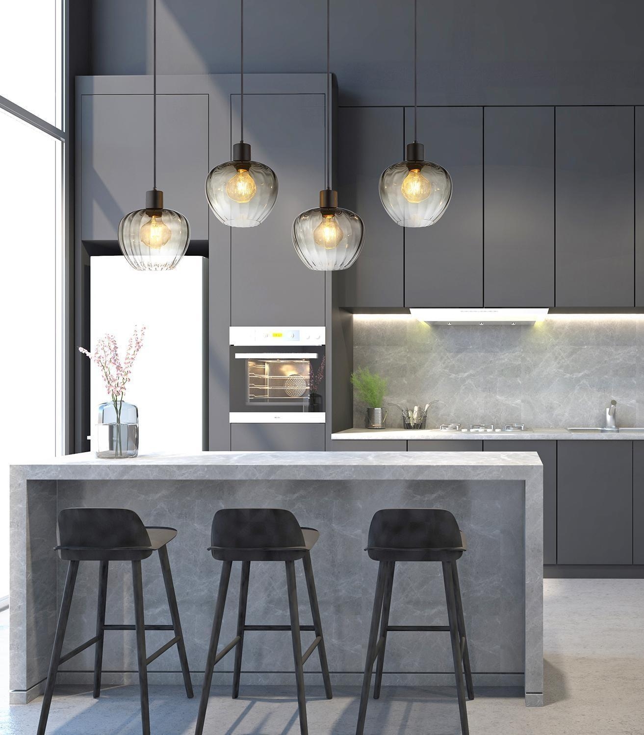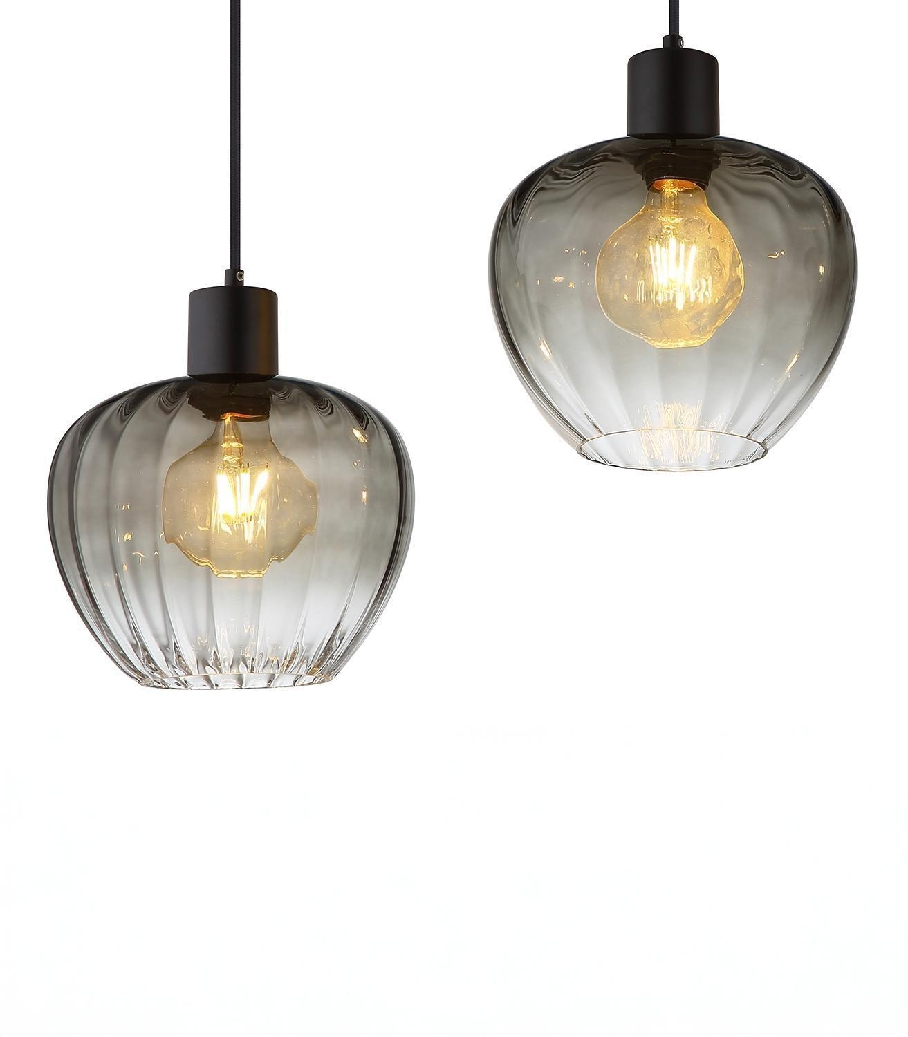 - Lampenschirme aus rauchfarbenem Glas mit Rillenoptik