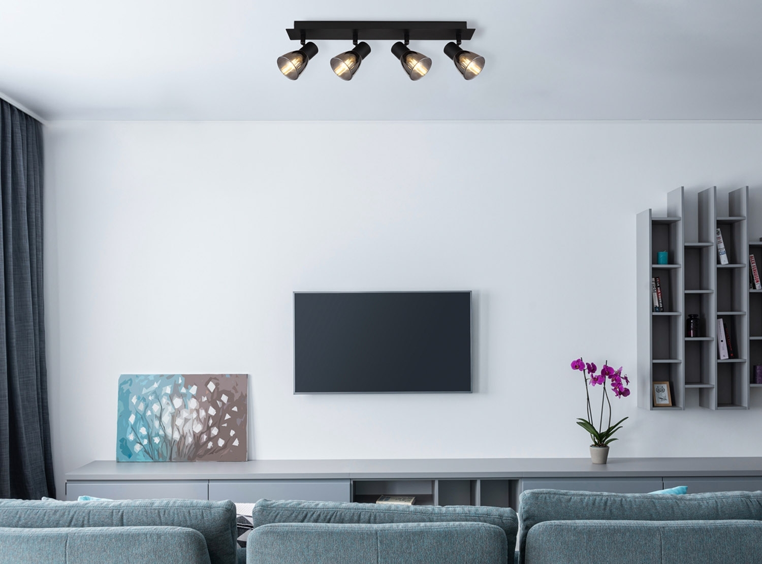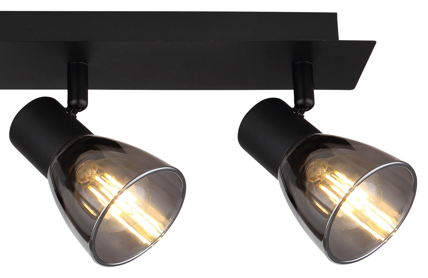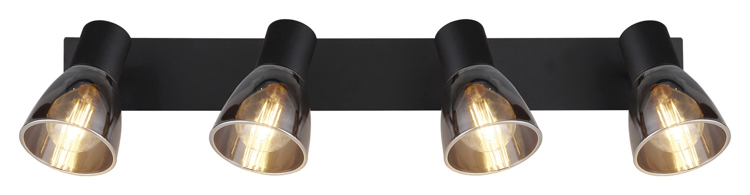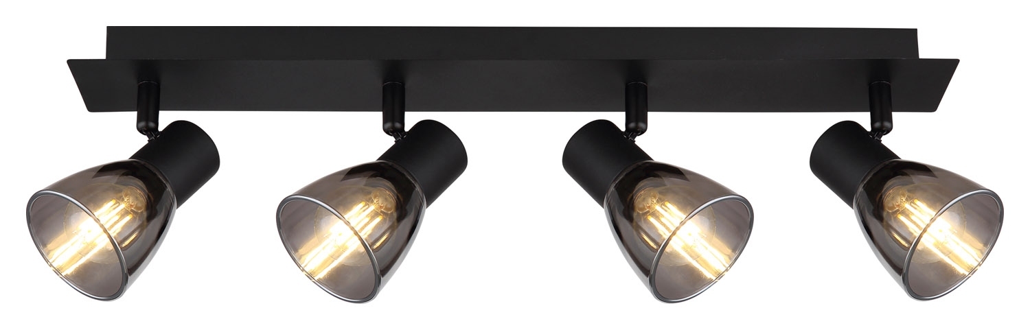 Schwarz matt - Rauchfarben - B 50 cm - Glas - Metall - 4-flammig