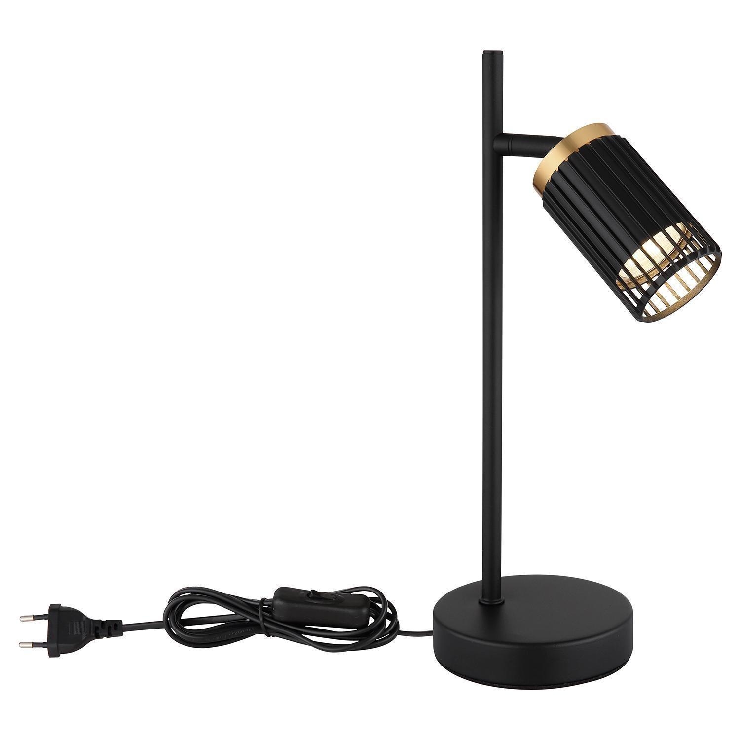 Die Tischlampe KORBEN der Marke Globo Lighting besteht aus Aluminium in Schwarz mit goldgelben Absetzungen. Sie verfügt über einen Schnurschalter. Die Maße betragen 16,5 cm in der Breite, 35 cm in der Höhe und 12 cm in der Tiefe. Die Lampe ist für ein Leuchtmittel der Fassung GU10 ausgestattet, das im Lieferumfang nicht enthalten ist. Das Leuchtmittel ist austauschbar und benötigt eine Leistung von maximal 5 Watt.