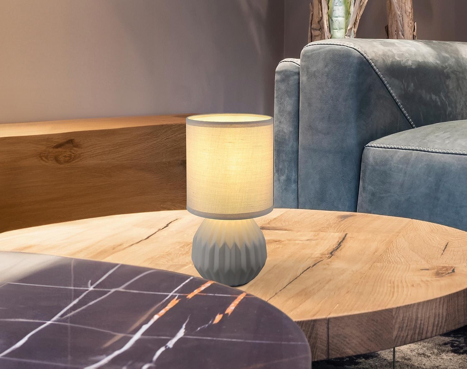Die Tischlampe SYLAS von Globo Lighting besteht aus einem grauen Keramikfuß und einem grauen Textillampenschirm. Sie ist für Leuchtmittel mit E14-Fassung geeignet, die eine maximale Leistung von 40 Watt haben dürfen. Die Lampe hat einen Durchmesser von 12 cm und eine Höhe von 23 cm. Es wird ein Leuchtmittel benötigt, das nicht im Lieferumfang enthalten ist, jedoch austauschbar ist. Die Tischlampe bietet eine flexible Einsatzmöglichkeit und ist mit Leuchtmitteln der E14-Fassung kompatibel.