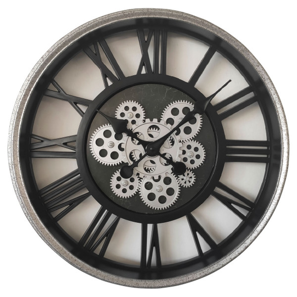 Die Wanduhr ZALETTI von Globo Lighting vereint klassisches Design mit modernem Flair. In Schwarz und Silbergrau gehalten, hat sie einen Durchmesser von 51 cm und besteht aus Kunststoff mit einer Glasfront. Ihre römischen Ziffern und die bewegten Zahnräder verleihen ihr einen zeitlosen und dennoch dynamischen Look, der jedem Raum einen Hauch von Eleganz verleiht.