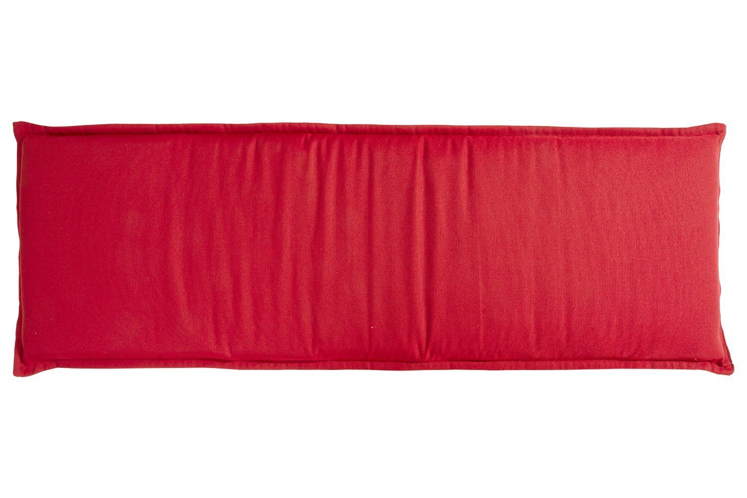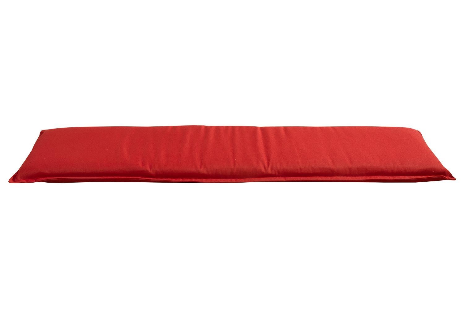 Die Bankauflage KELISTEA der Marke GO-DE ist in Rot gestaltet und für die Verwendung auf 3-Sitzer-Gartenbänken vorgesehen. Diese Polsterauflage weist eine Länge von 148 cm, eine Breite von 48 cm sowie eine Höhe von 6 cm auf. Zur Ausstattung dieser in Deutschland gefertigten Bankauflage gehört ein dekorativer Stehsaum. Die Materialzusammensetzung besteht zu 100 % aus strapazierfähigem Polyester, was die Oberfläche dieser Sitzauflage besonders belastbar macht. Die Reinigung dieses Polsters erfolgt per Handwäsche.