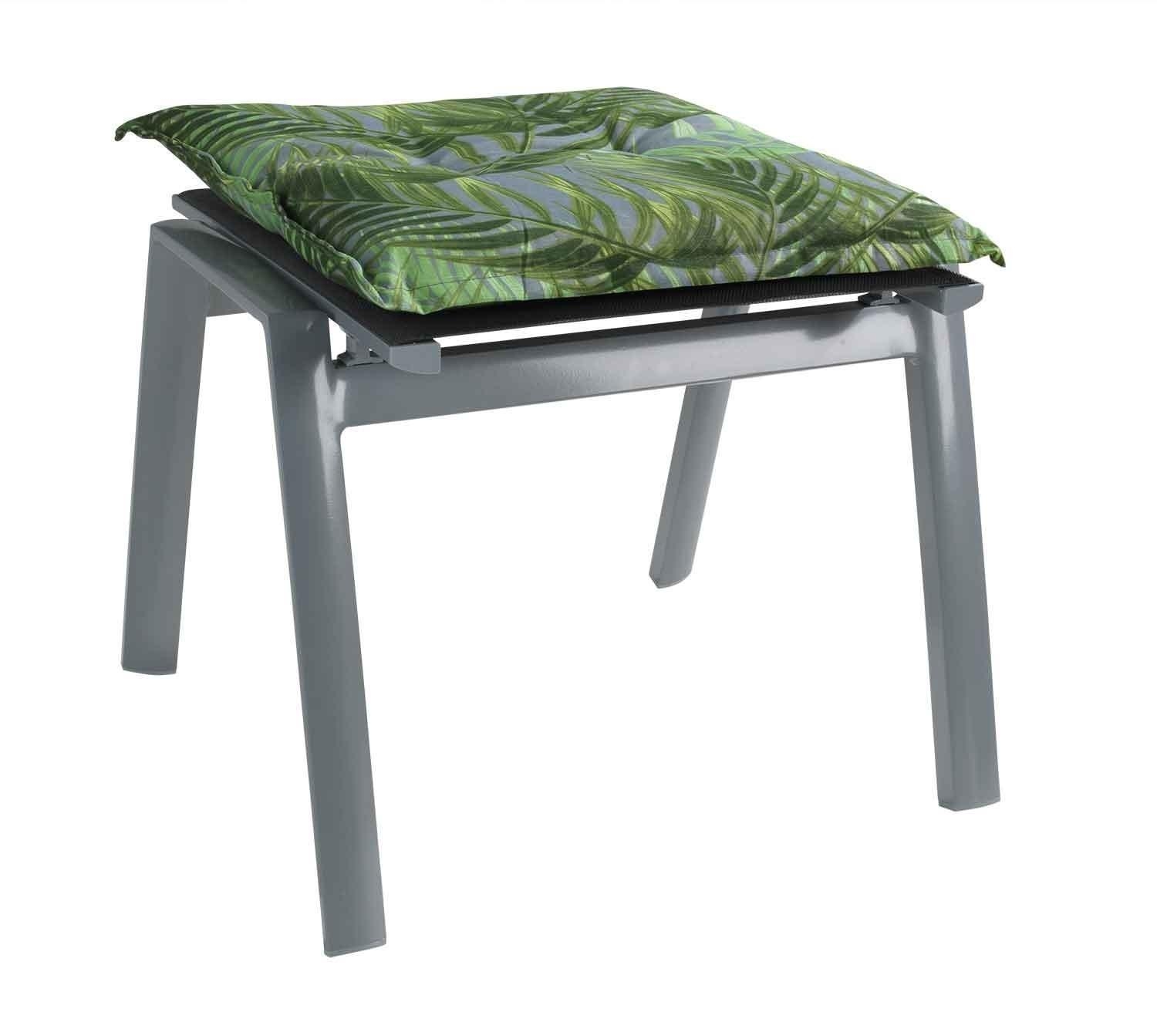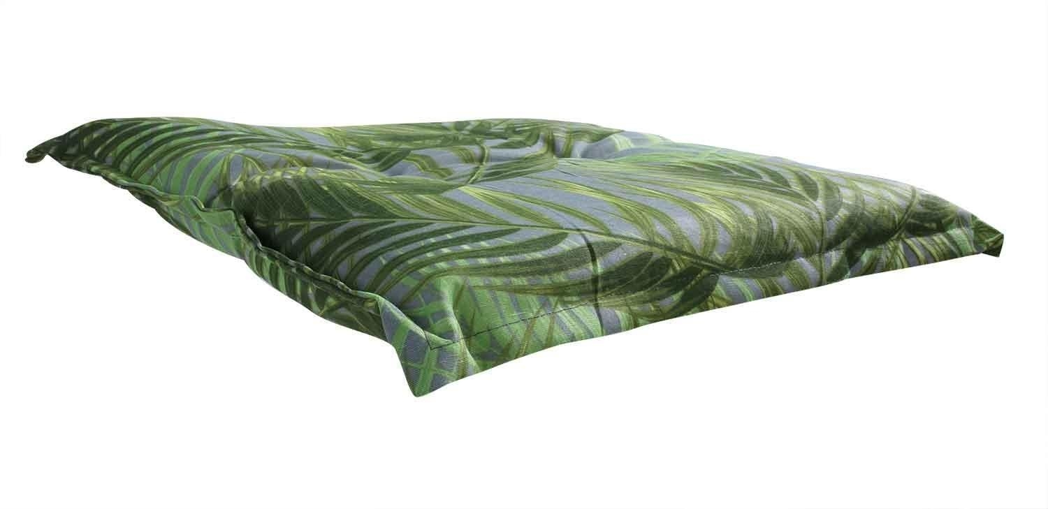 Die Hockerauflage ILANA der Marke GO-DE ist in Grün gestaltet und mit einem Palmenmotiv versehen. Diese Sitzauflage weist eine Länge von 50 cm, eine Breite von 50 cm sowie eine Höhe von 6 cm auf. Die Materialzusammensetzung dieser Polsterauflage besteht zu 65 % aus Polyester und zu 35 % aus Baumwolle. Die Fertigung erfolgt in Deutschland. Für die Pflege dieses Gartenmöbel-Zubehörs wird Handwäsche empfohlen.