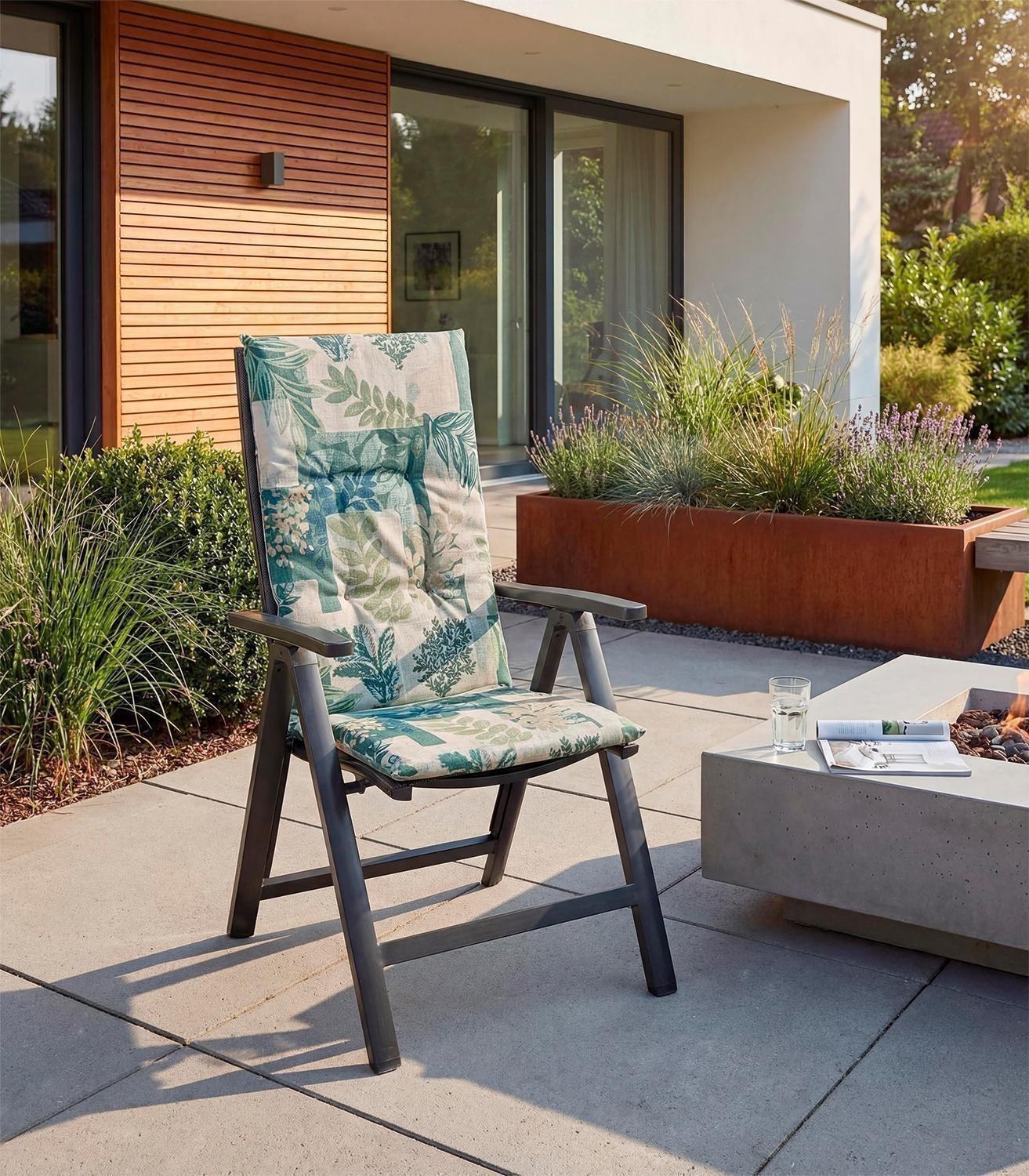 - Gartenstuhlauflage in Beige, Blau und Grün