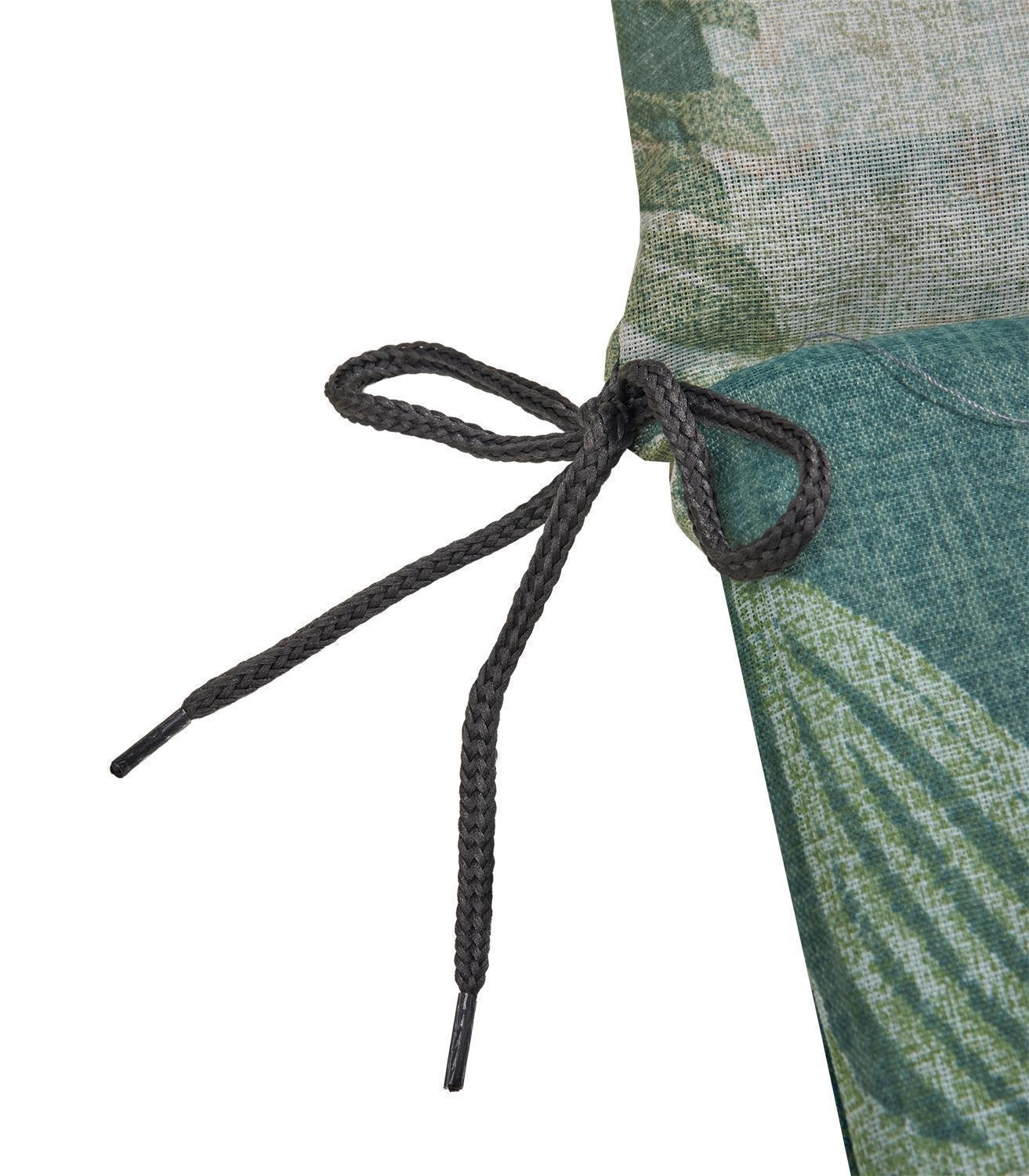 | Lieferumfang: | 1 Gartenstuhlauflage für Hochlehnstühle mit verstellbarem Gurtband und seitlichen Bindekordeln |