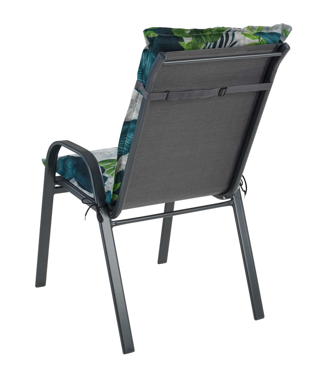 | Lieferumfang: | 1 Gartenstuhlauflage für Mittellehnstühle mit verstellbarem Gurtband und seitlichen Bindekordeln |