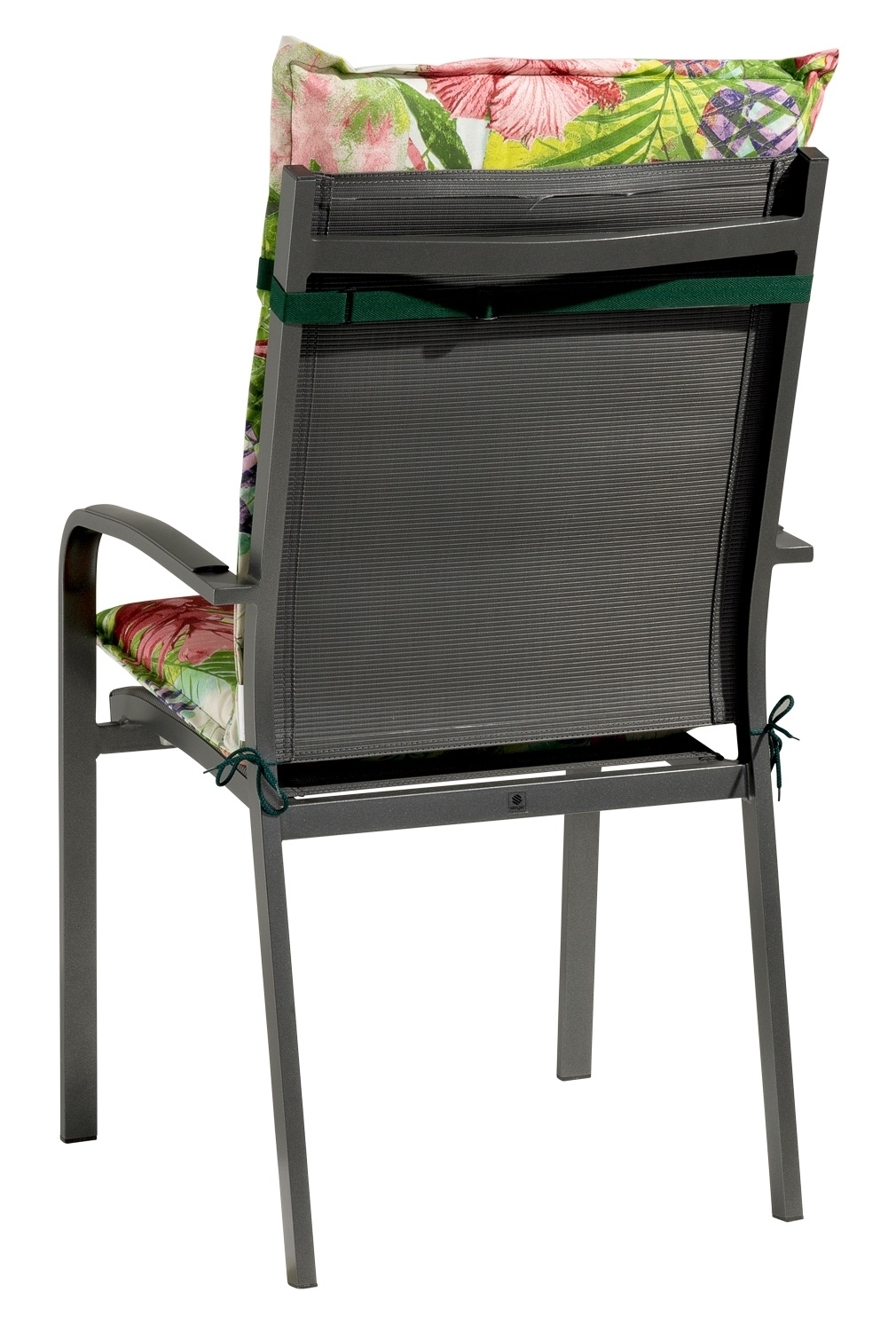 | Lieferumfang: | 1 Gartenstuhlauflage mit verstellbarem Gurtband und seitlichen Bindekordeln |