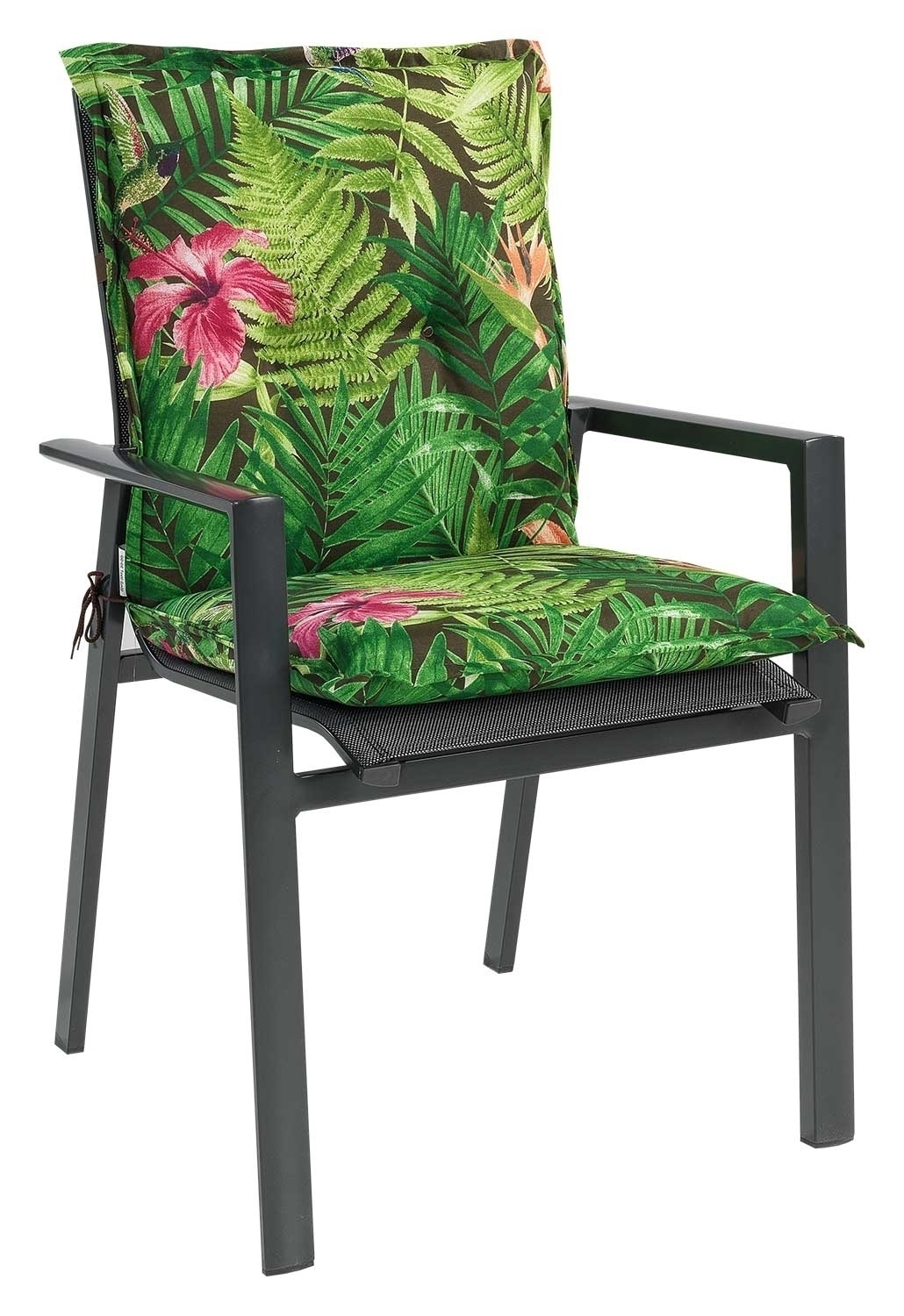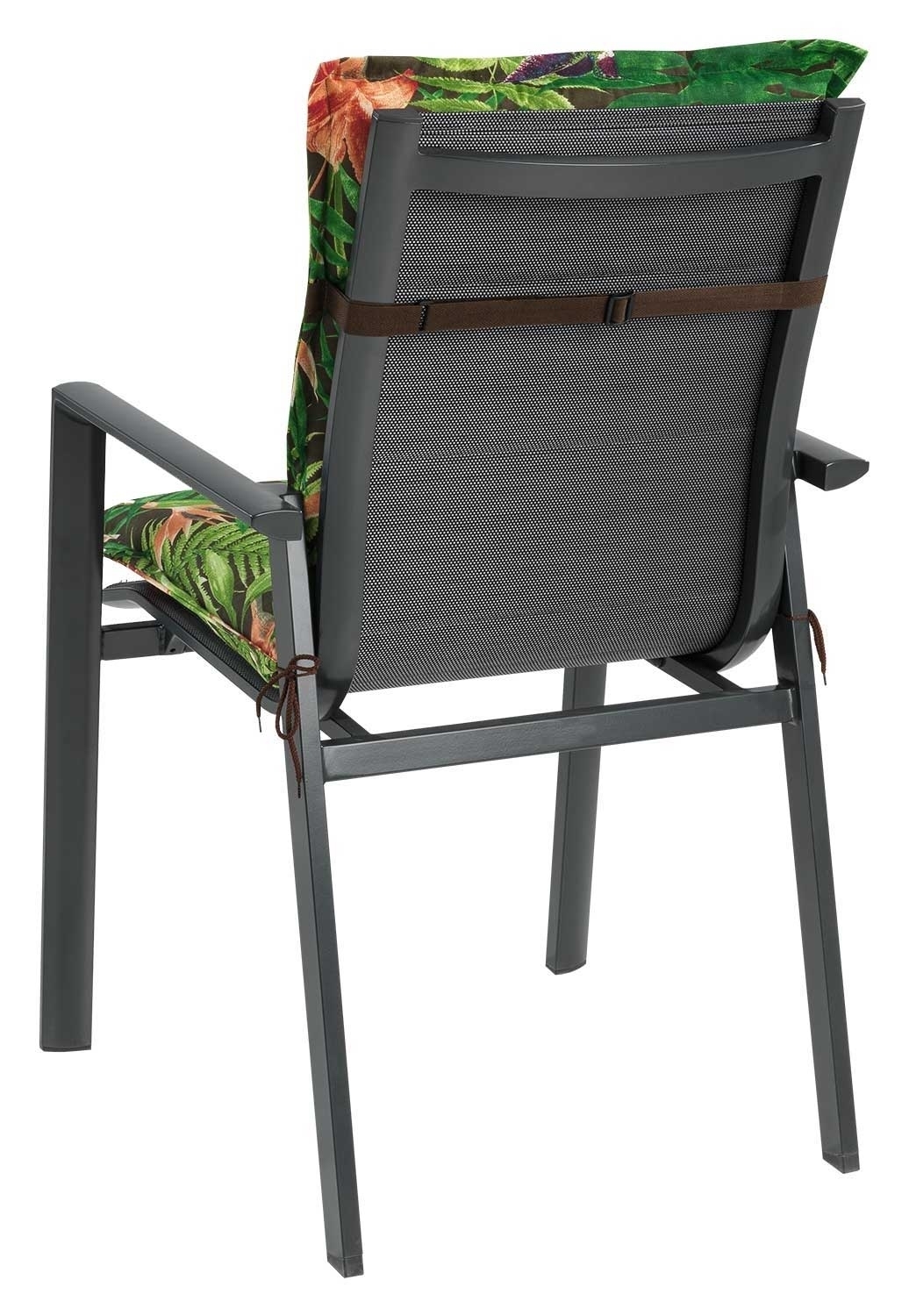 | Lieferumfang: | 1 Gartenstuhlauflage für Niederlehnstühle mit verstellbarem Gurtband und seitlichen Bindekordeln |