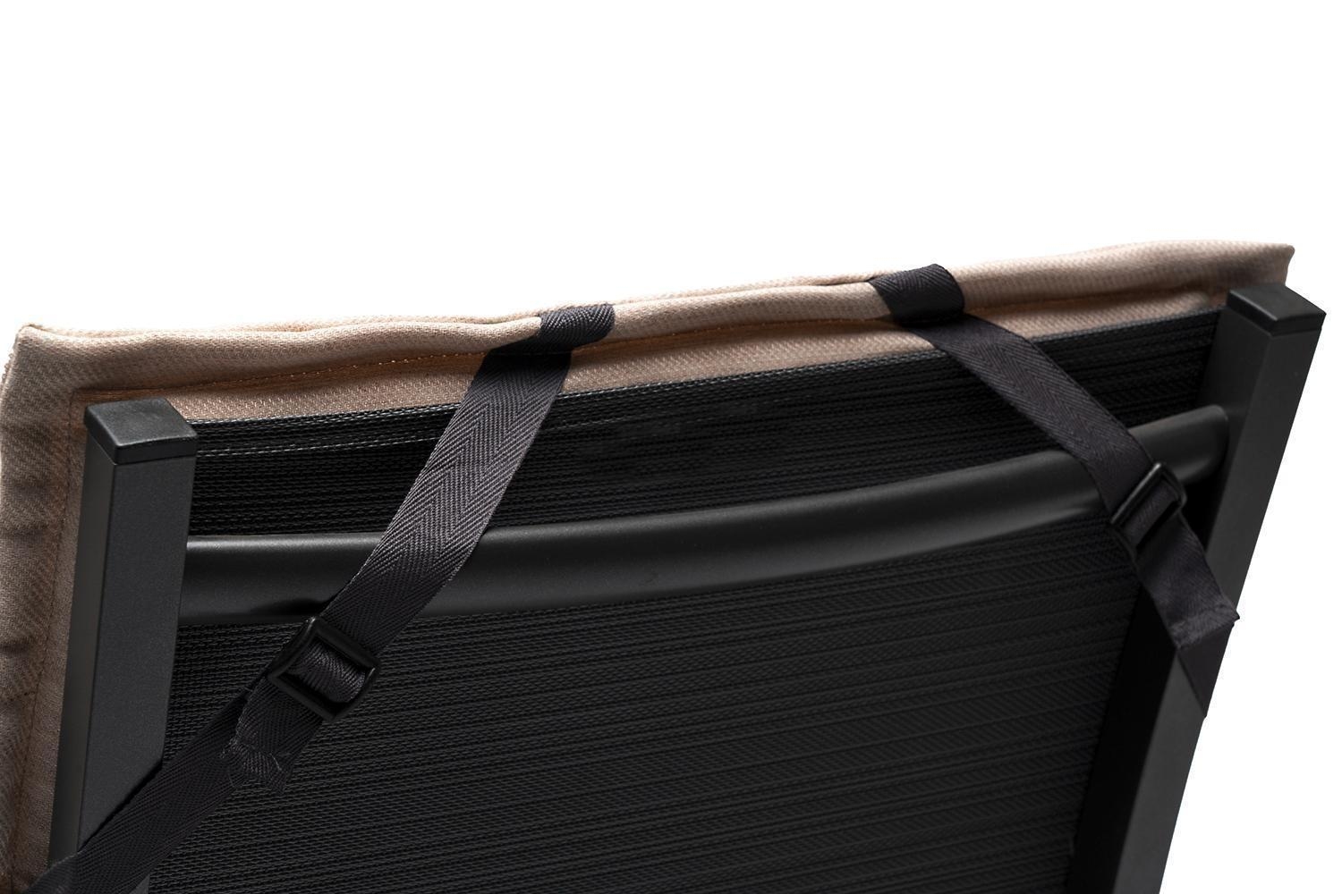 | Lieferumfang: | 1 Gartenstuhlauflage für Niederlehnstühle mit verstellbarem Gurtband und seitlichen Bindekordeln |