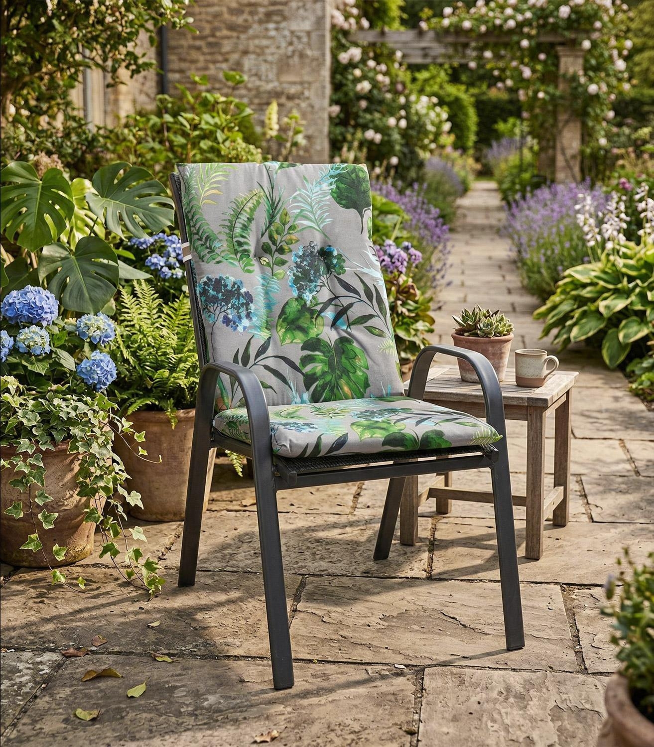 - Gartenstuhlauflagen in grau, blau und grün