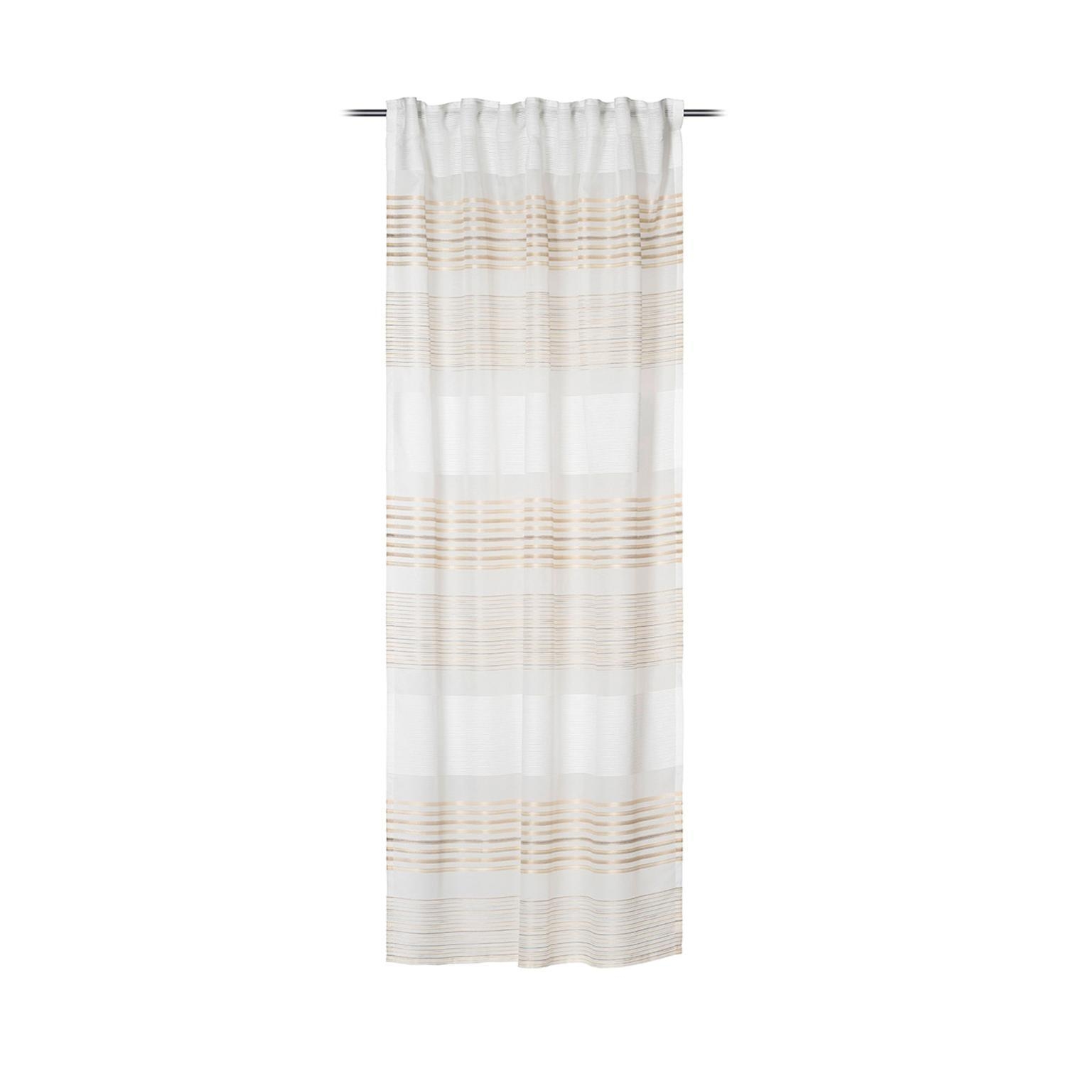 Der verdeckte Schlaufenschal RICA von Gözze setzt mit Querstreifen in Weiß und Gelb einen frischen Akzent im Wohnraum. Mit einer Größe von 140 x 245 cm eignet er sich für viele Fensterformate. Gefertigt aus Polyester und Polyacryl, überzeugt er mit pflegeleichten Eigenschaften. Verdeckte Schlaufen und ein integriertes Bügelband ermöglichen eine einfache Anbringung. Der Schal ist bis 30 °C waschbar.