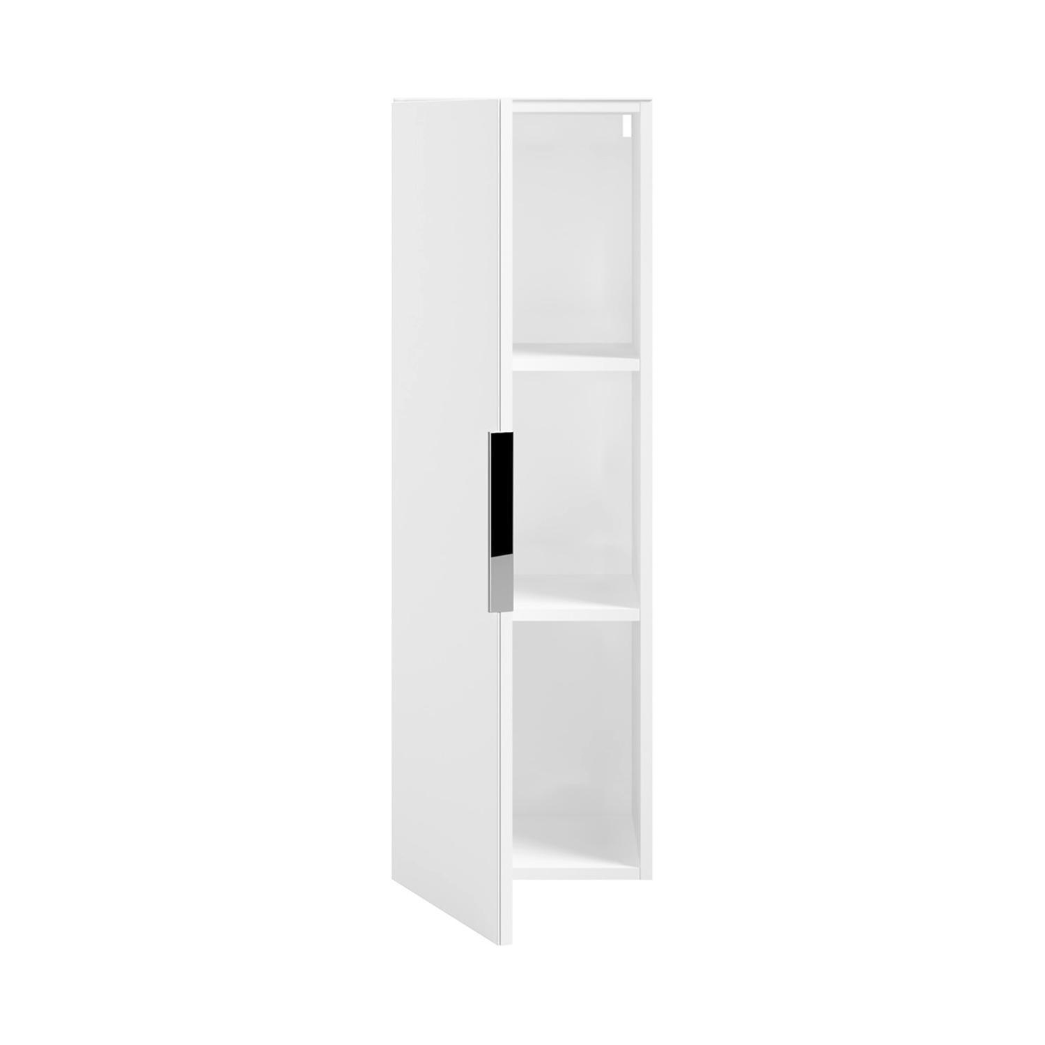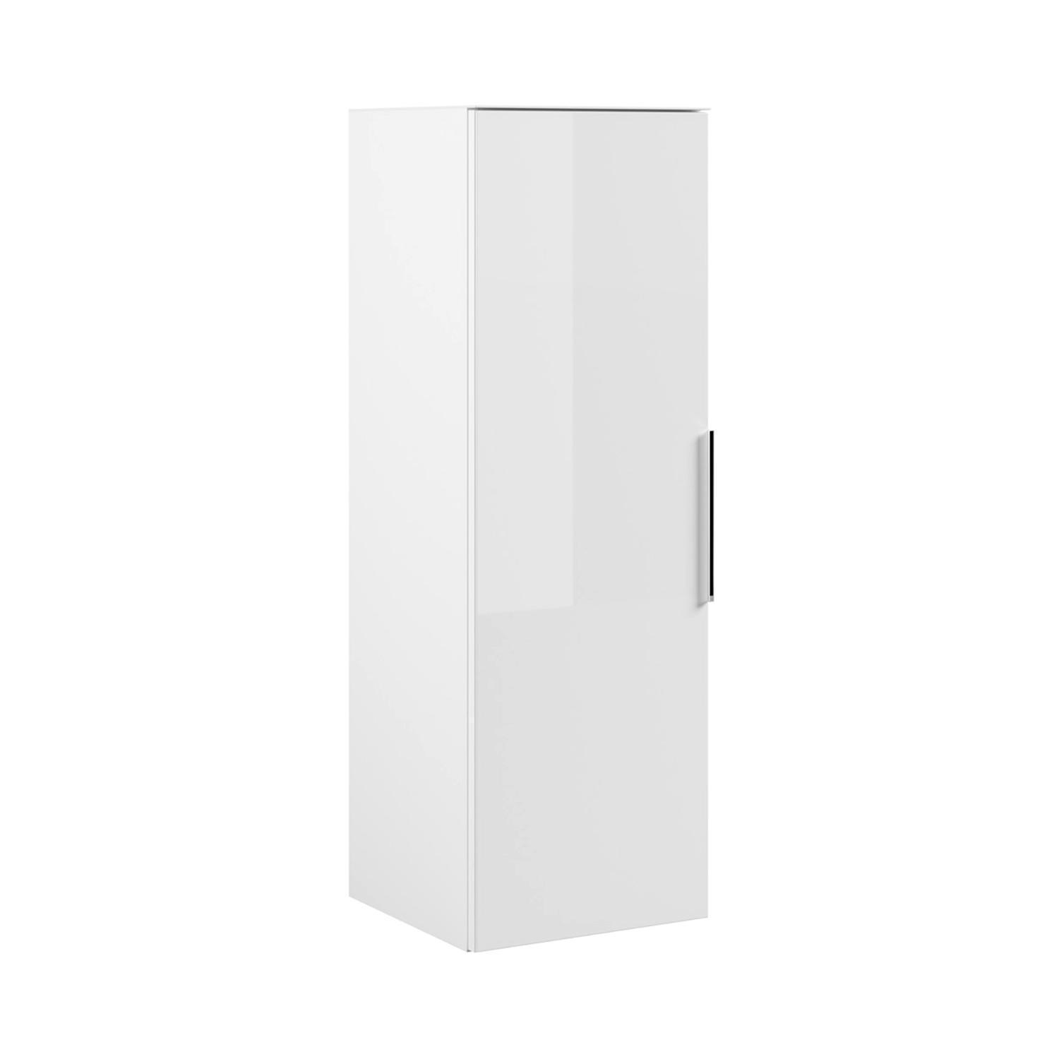 Der Hängeschrank SAKURA ist in Weiß matt gestaltet und verfügt über eine Oberplatte sowie eine Front aus Weißglas. Dieses Stauraummöbel ist mit einer Tür und zwei Einlegeböden ausgestattet. Die Konstruktion ermöglicht eine sowohl horizontale als auch vertikale Montage an der Wand. Die Abmessungen dieser Aufbewahrungslösung belaufen sich auf eine Breite von 35 cm, eine Höhe von 106 cm und eine Tiefe von 35 cm.